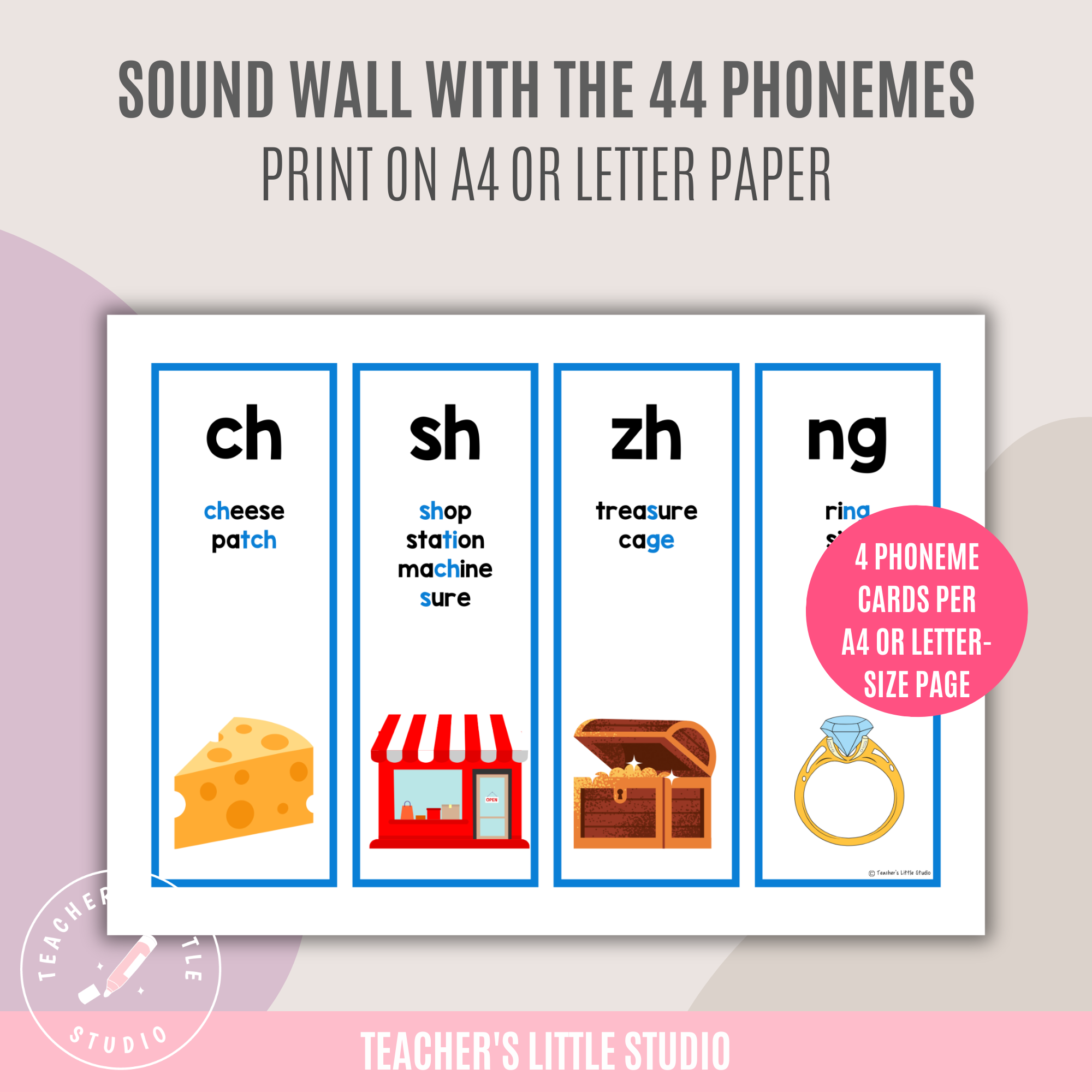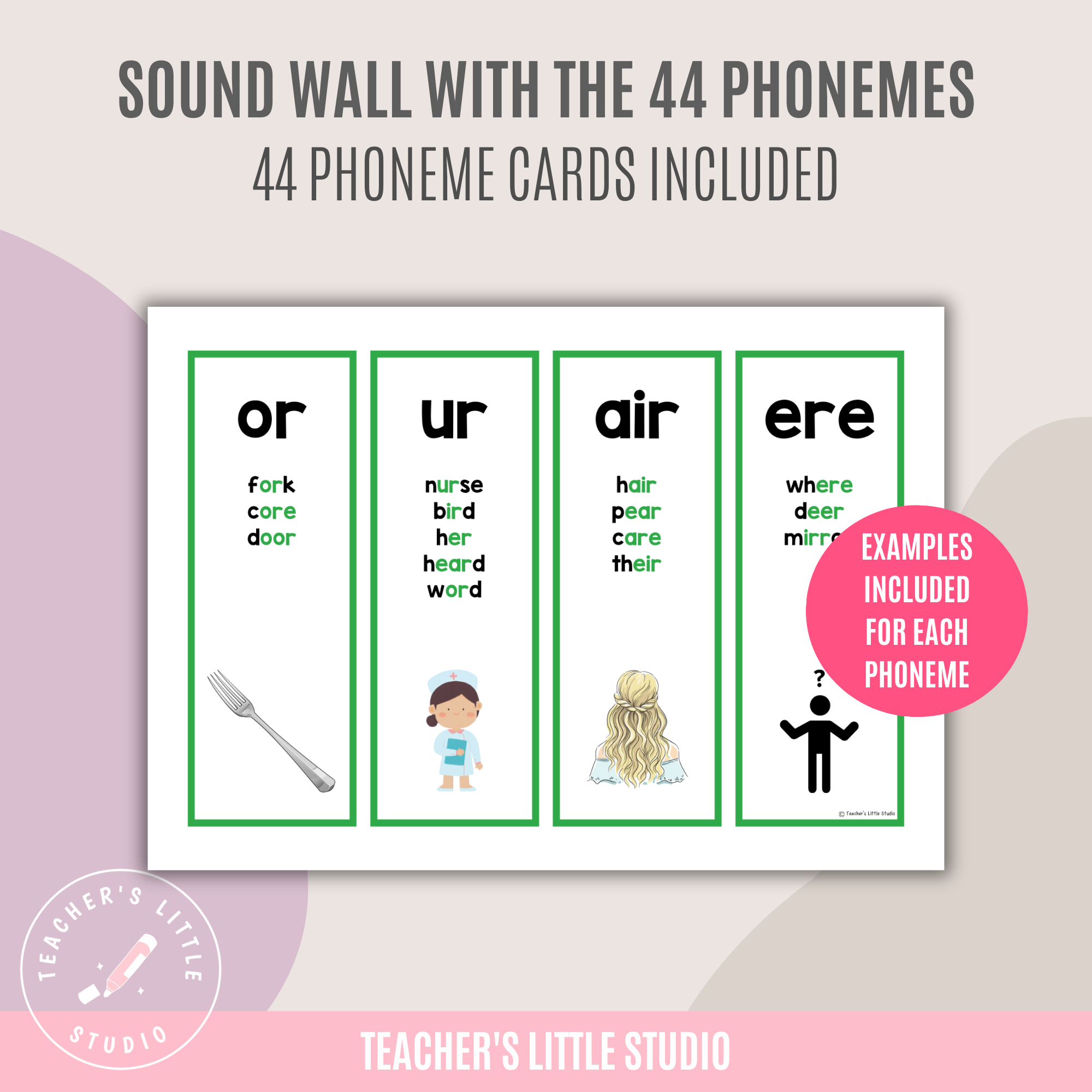 Create a vibrant 44 Sound Wall display to help students master phonemic awareness. Perfect for elementary, primary, ESL, and homeschool classrooms.