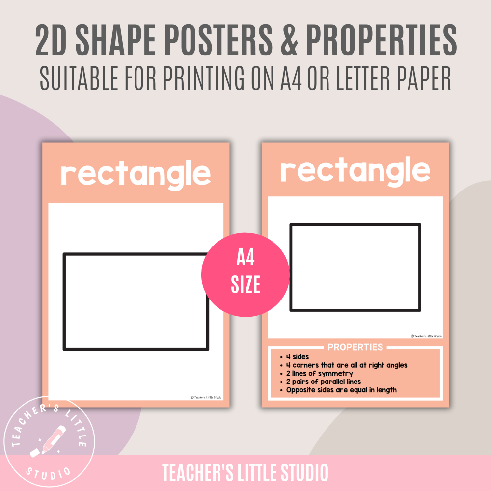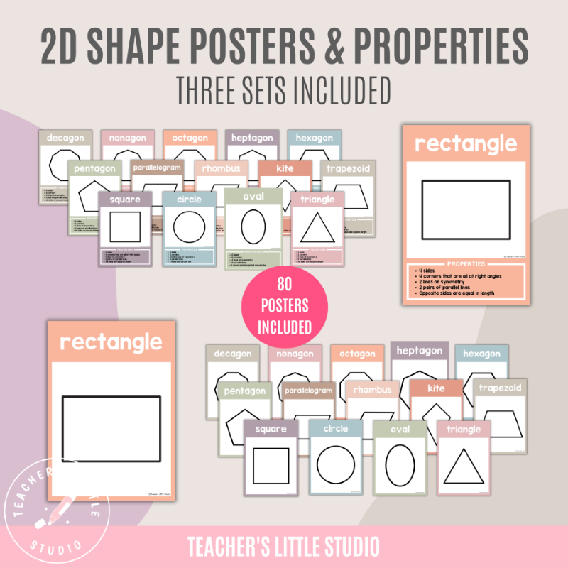 These Boho 2D Shapes with Properties Posters are perfect for teaching geometry in primary, elementary, and homeschool classrooms. Each set includes posters with properties, attributes, and name-only versions to help students confidently identify and describe 2D shapes.