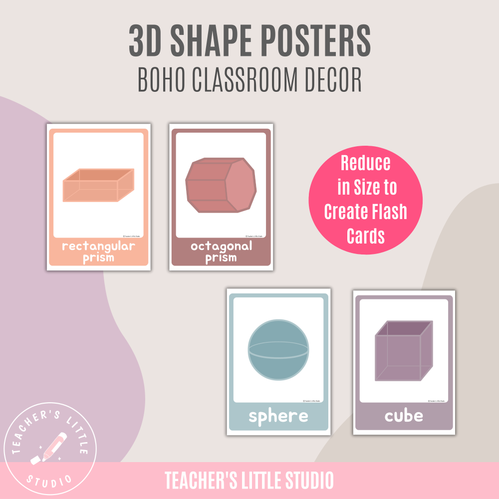 Bring calm and stylish visuals into your math lessons with these Boho 3D Shape Posters. Designed for primary, elementary, and middle school classrooms, these printable posters are also a fantastic resource for homeschooling.