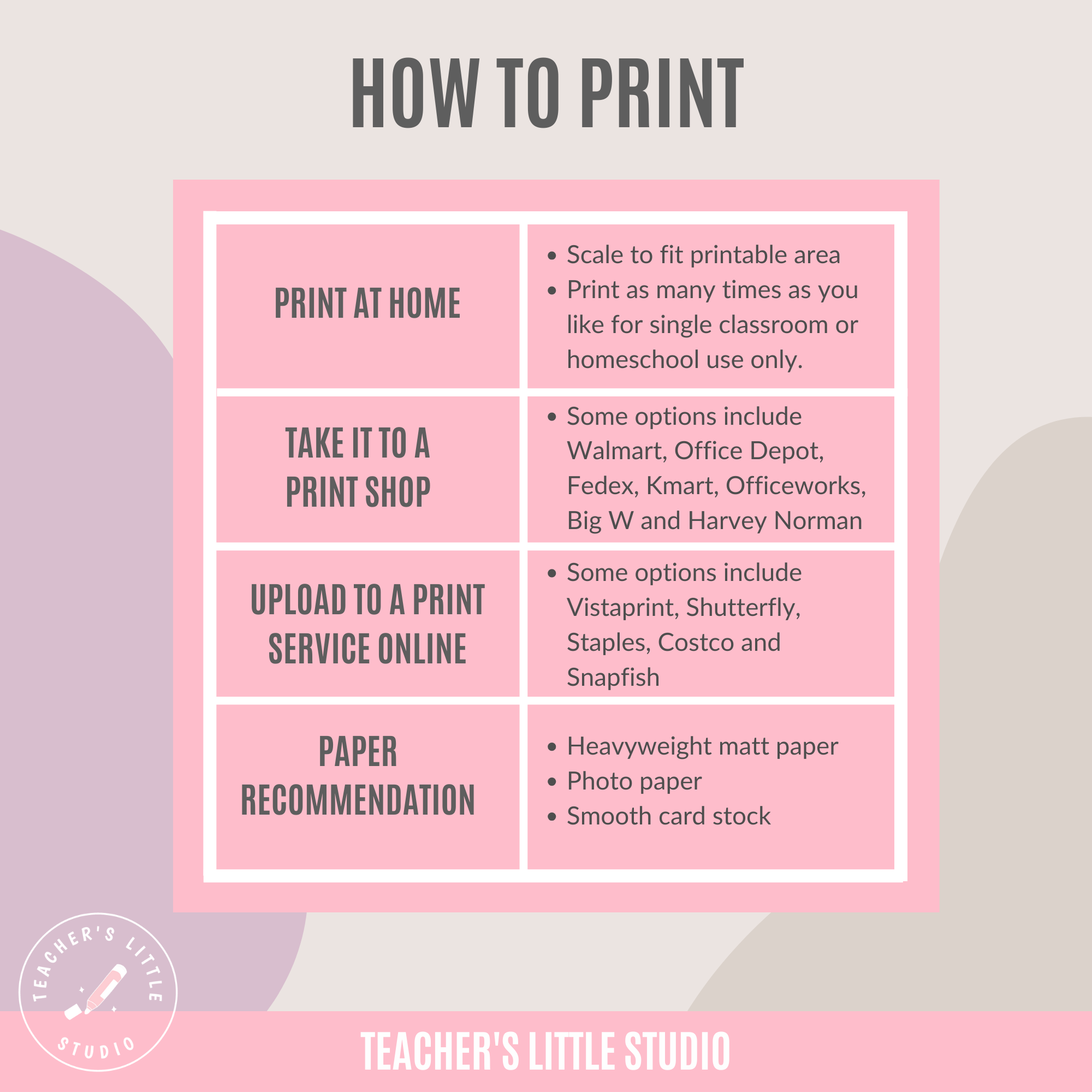 Thank you for respecting the time, creativity, and effort that goes into creating these resources.  And thanks for supporting my small business. If you have any questions about your product or need help, feel free to contact me at info@teacherslittlestudio.com.