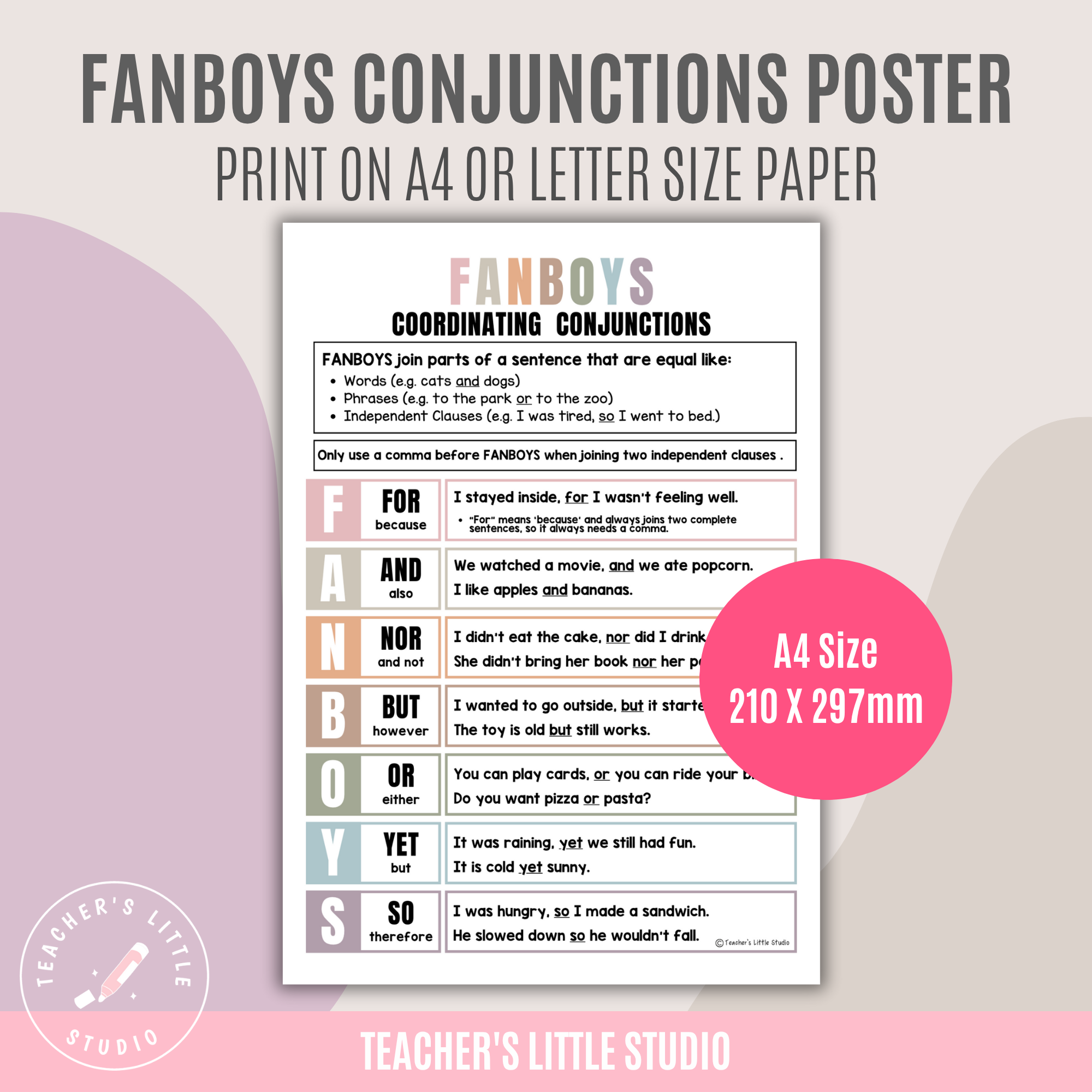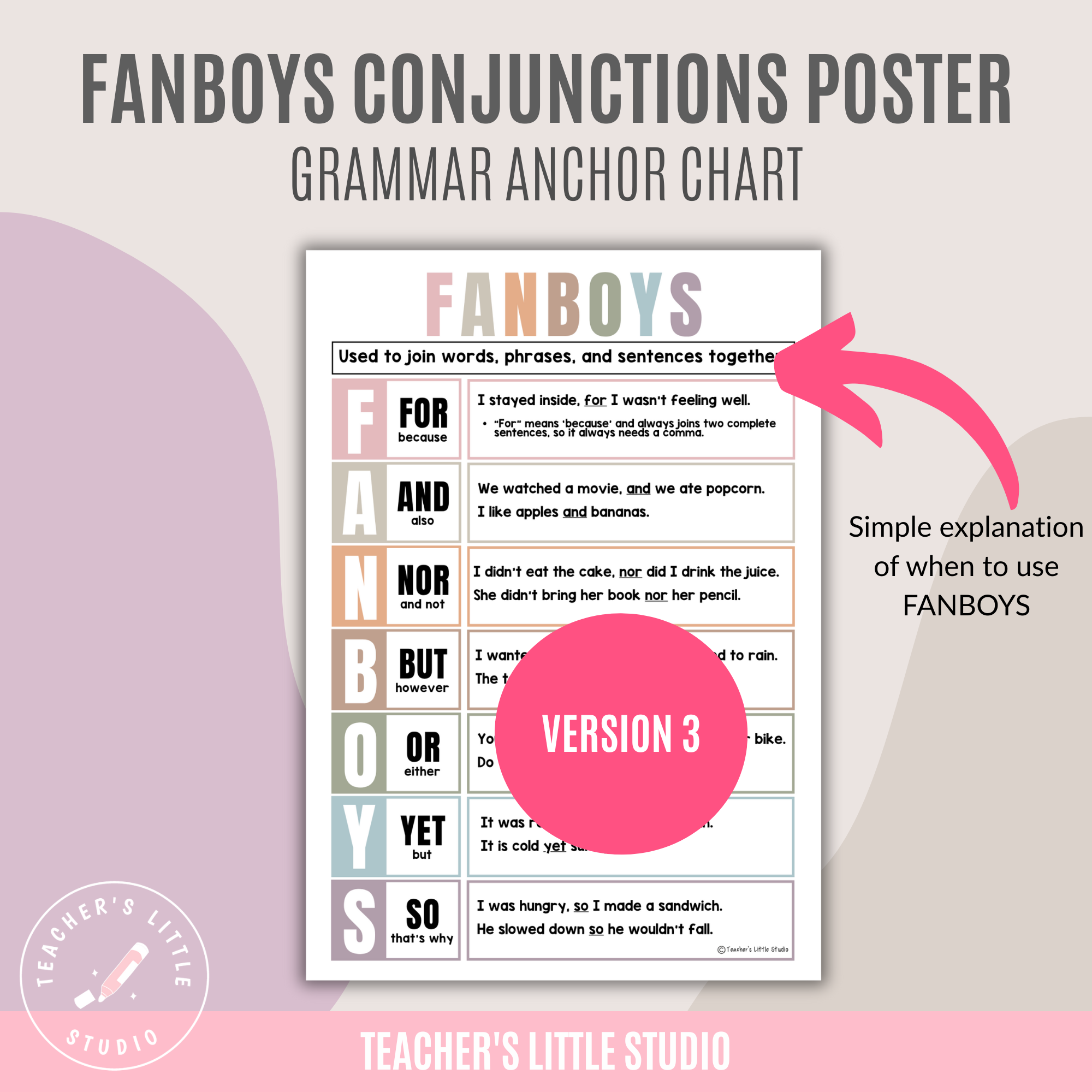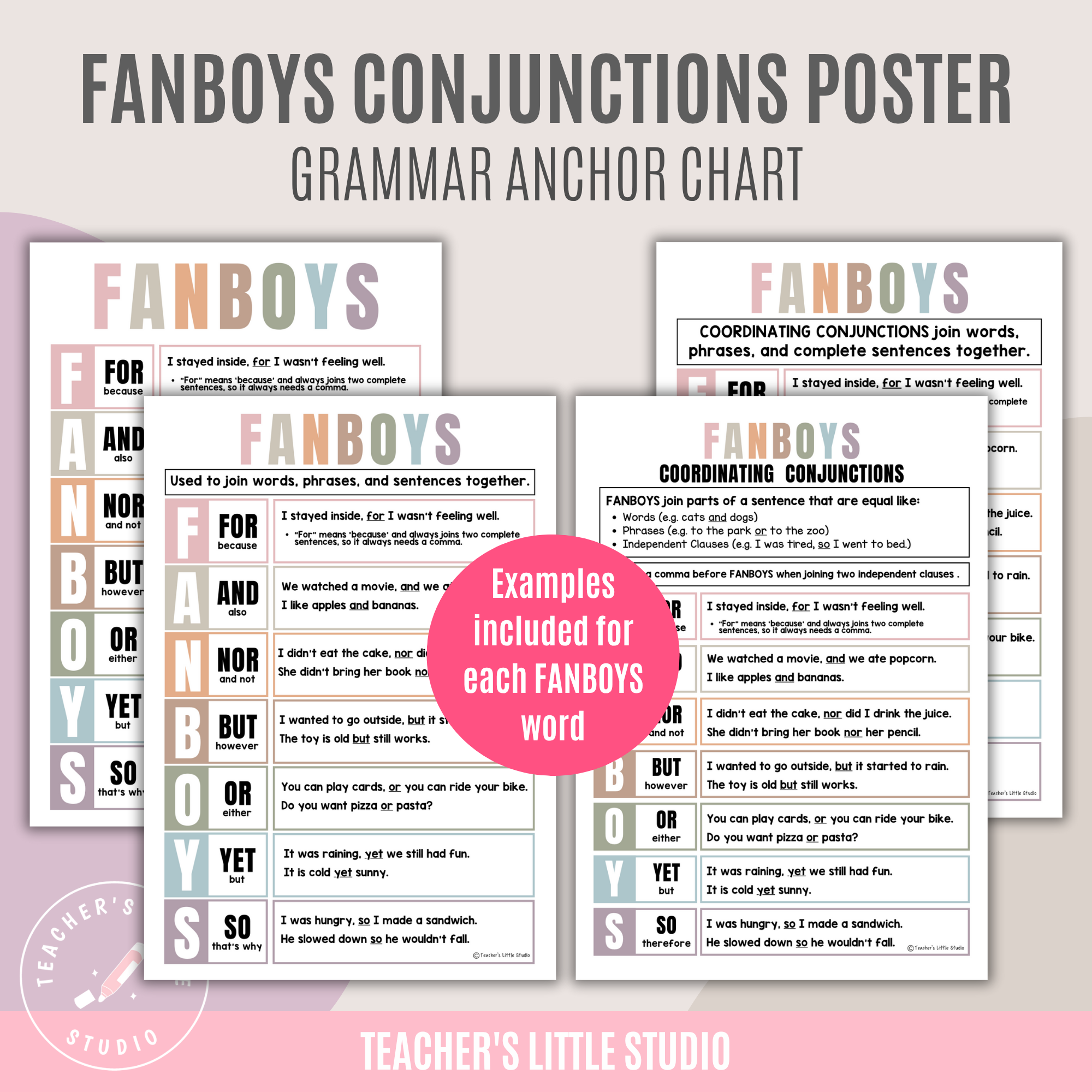 Make grammar lessons clear and engaging with this FANBOYS Conjunction Poster Set, designed to help students understand coordinating conjunctions and how they work in sentences. These posters make it easier for learners to see when to use commas, how to join ideas, and how to apply FANBOYS words in their own writing.