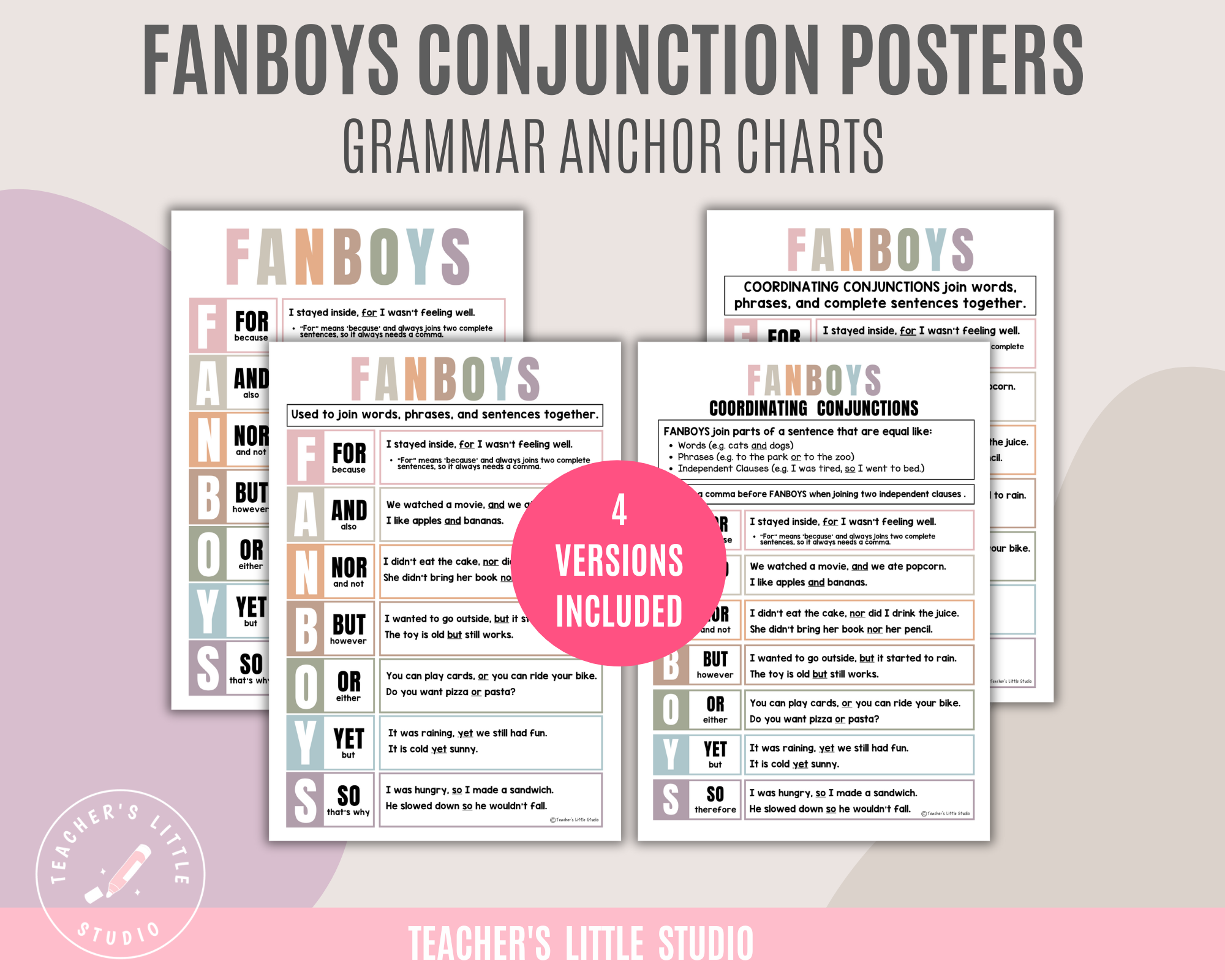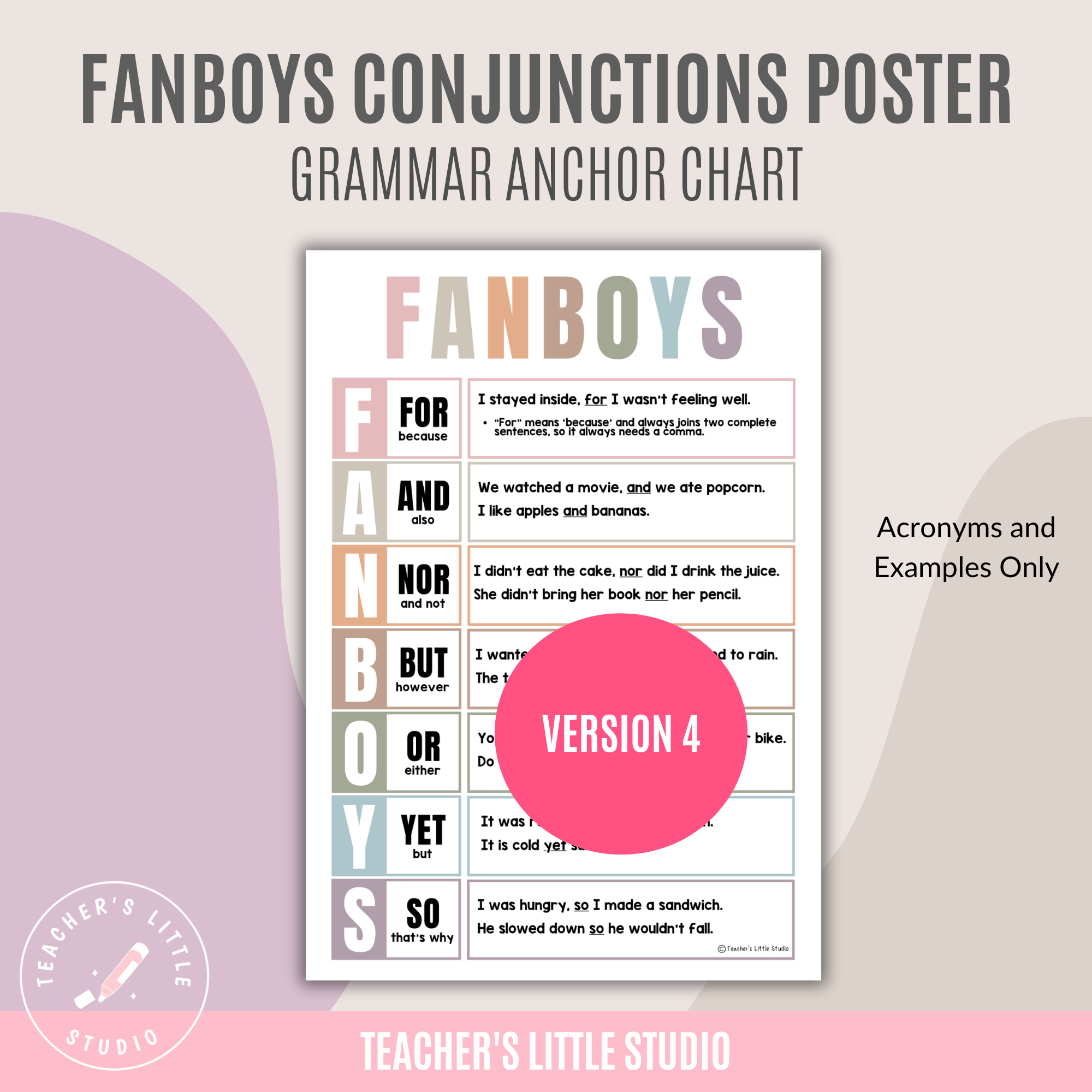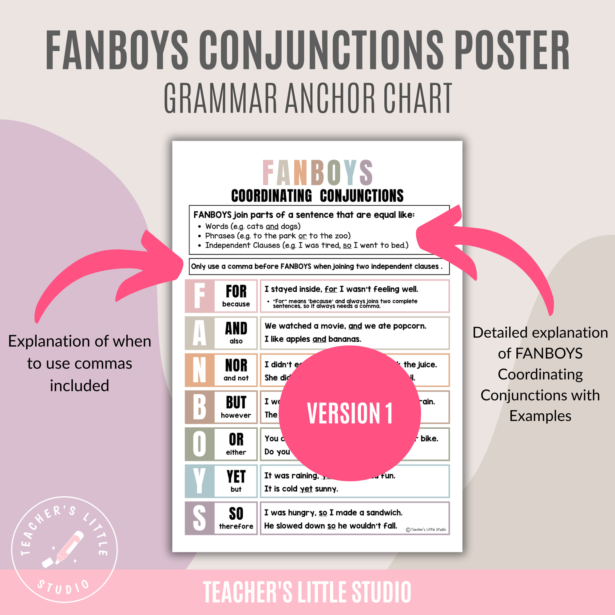 Make grammar lessons clear and engaging with this FANBOYS Conjunction Poster Set, designed to help students understand coordinating conjunctions and how they work in sentences. These posters make it easier for learners to see when to use commas, how to join ideas, and how to apply FANBOYS words in their own writing.