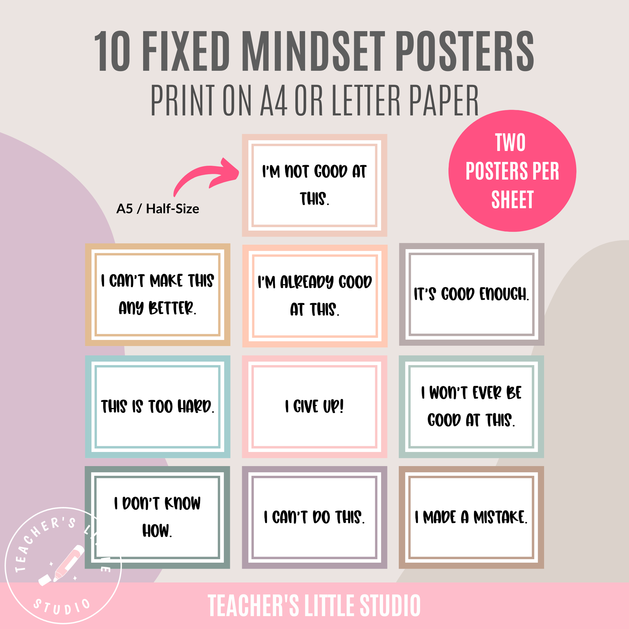 The set comes in A4 and US Letter sizes. A matching “GROWTH MINDSET” display header is also provided, perfect for creating a positive wall display.