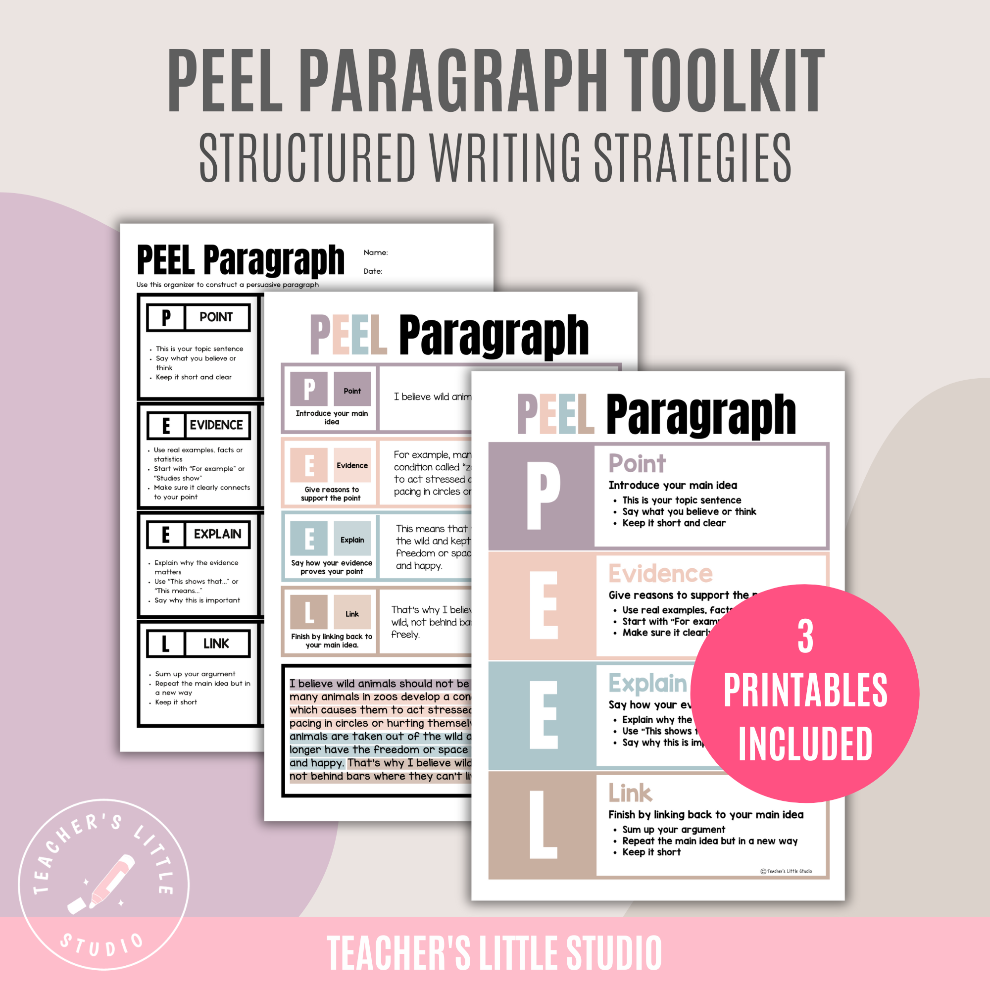 Teach students how to write clear, well-structured paragraphs with this PEEL Paragraph Writing Toolkit! Perfect for persuasive and analytical writing lessons, this classroom resource gives students the tools they need to master the PEEL writing structure.