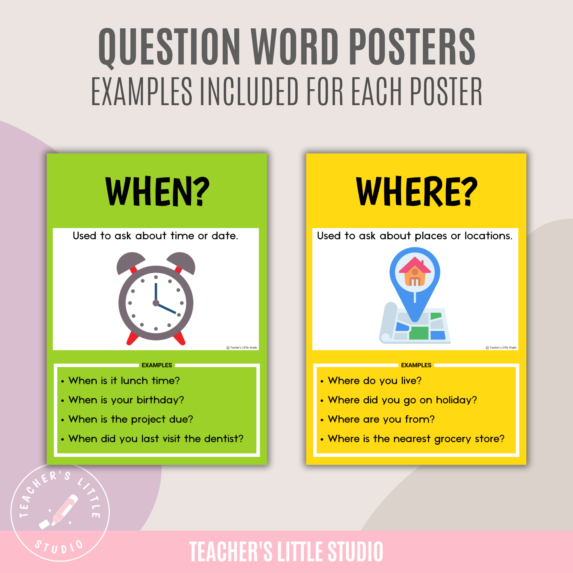 Make teaching question words easy and engaging with this set of Question Word Posters. Perfect for elementary and primary classrooms, ESL learners, speech therapy sessions, or even home learning, these posters help students understand and use WH questions with confidence.