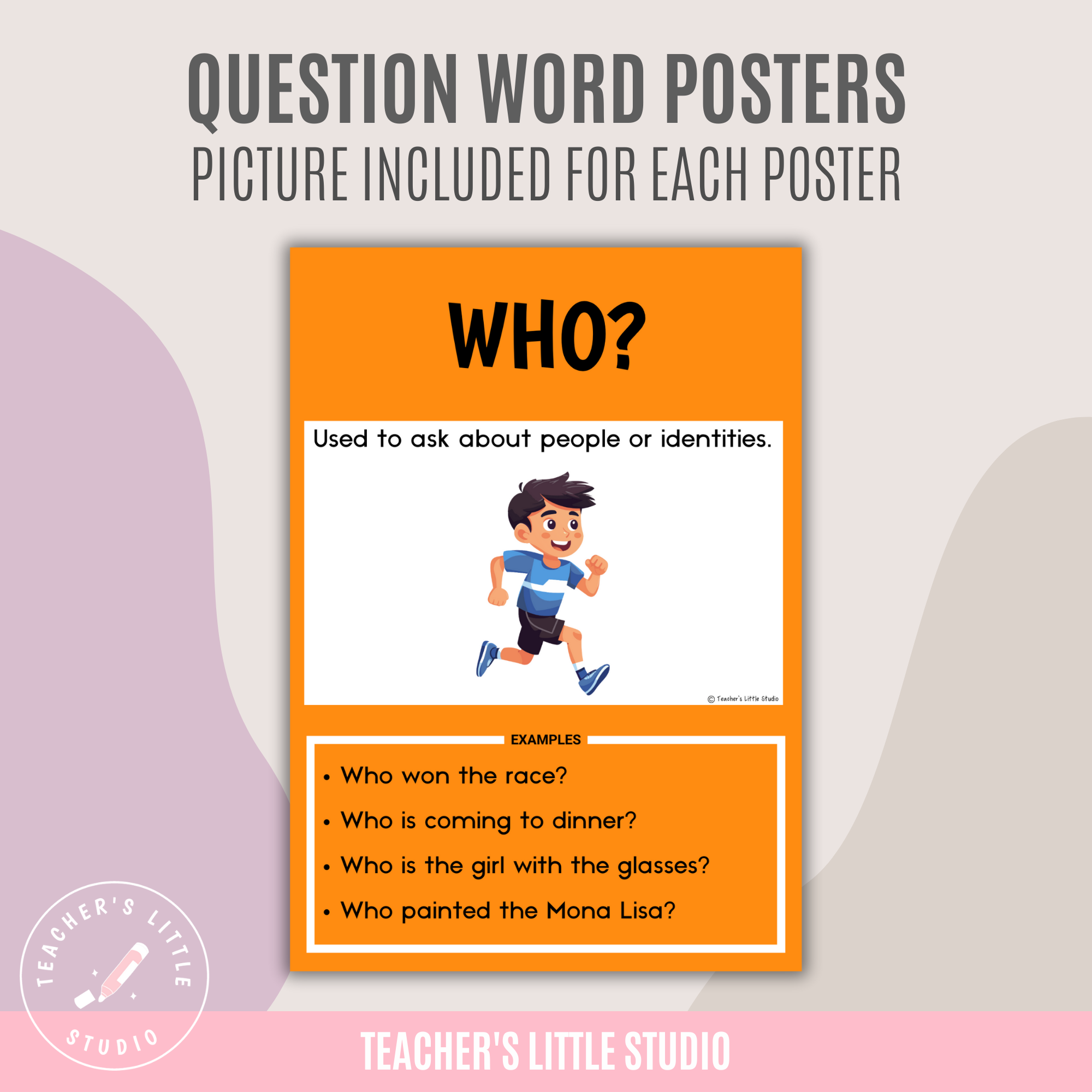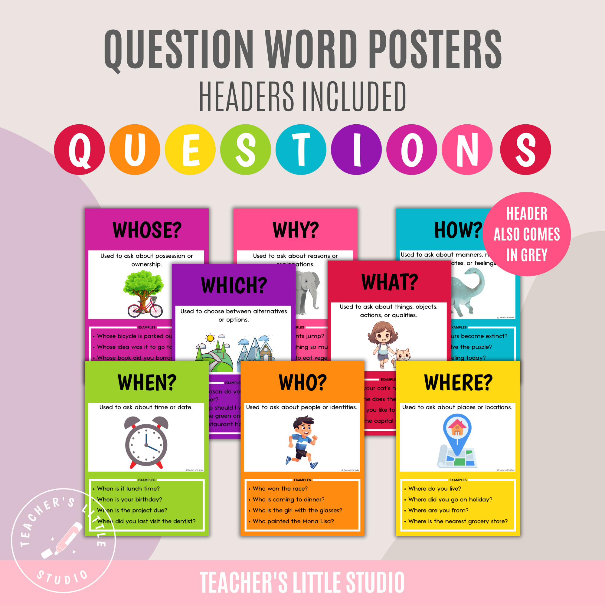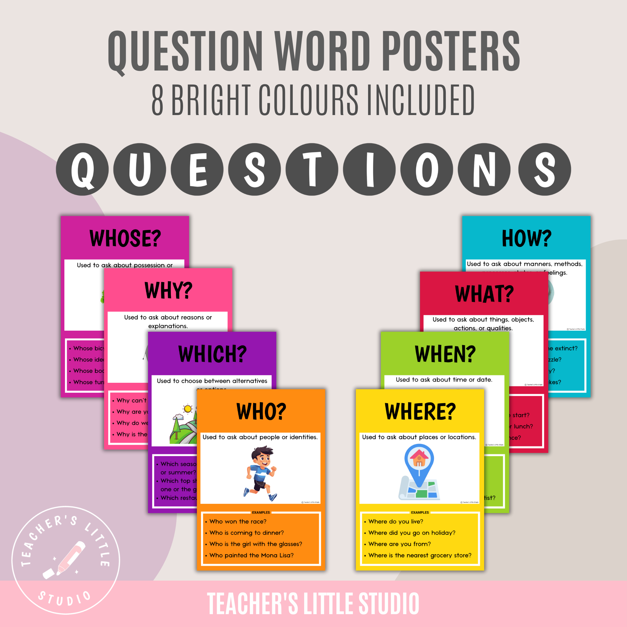 1. Eight Question Posters: Who, Where, When, What, How, Which, Whose, Why (8 pages)