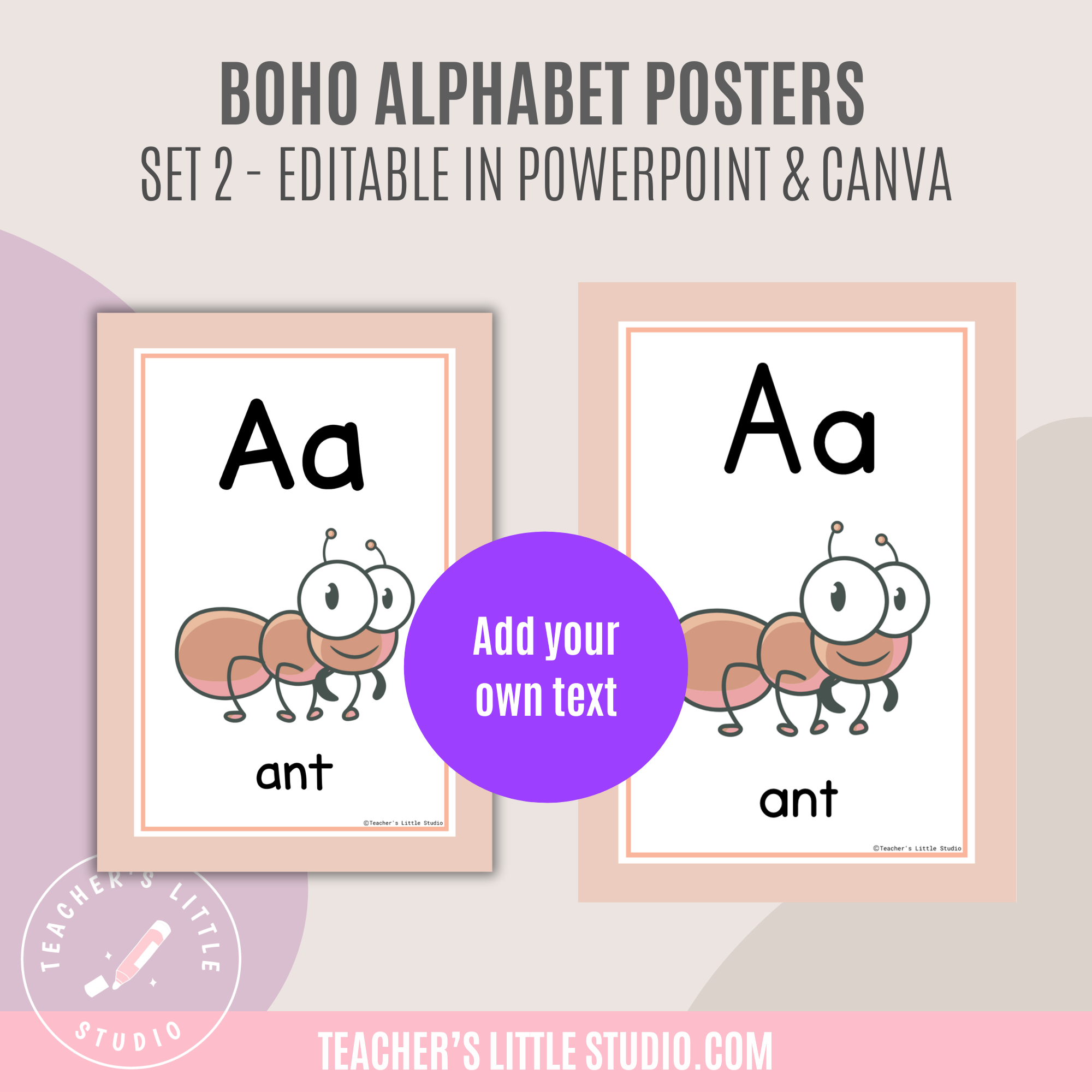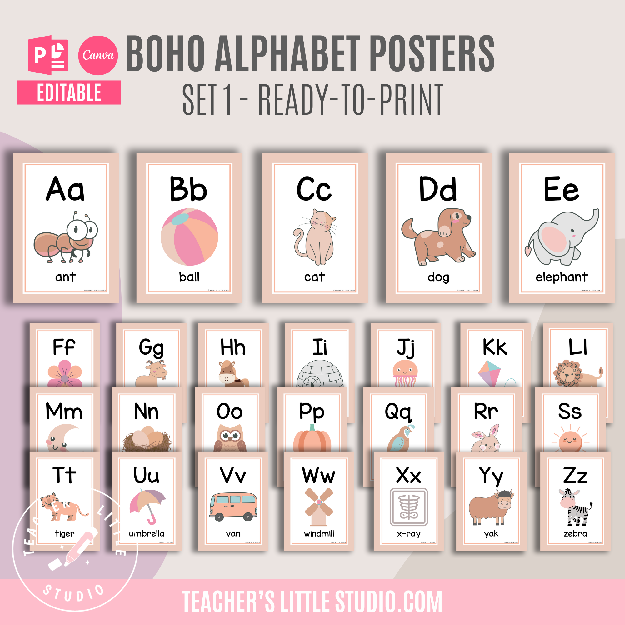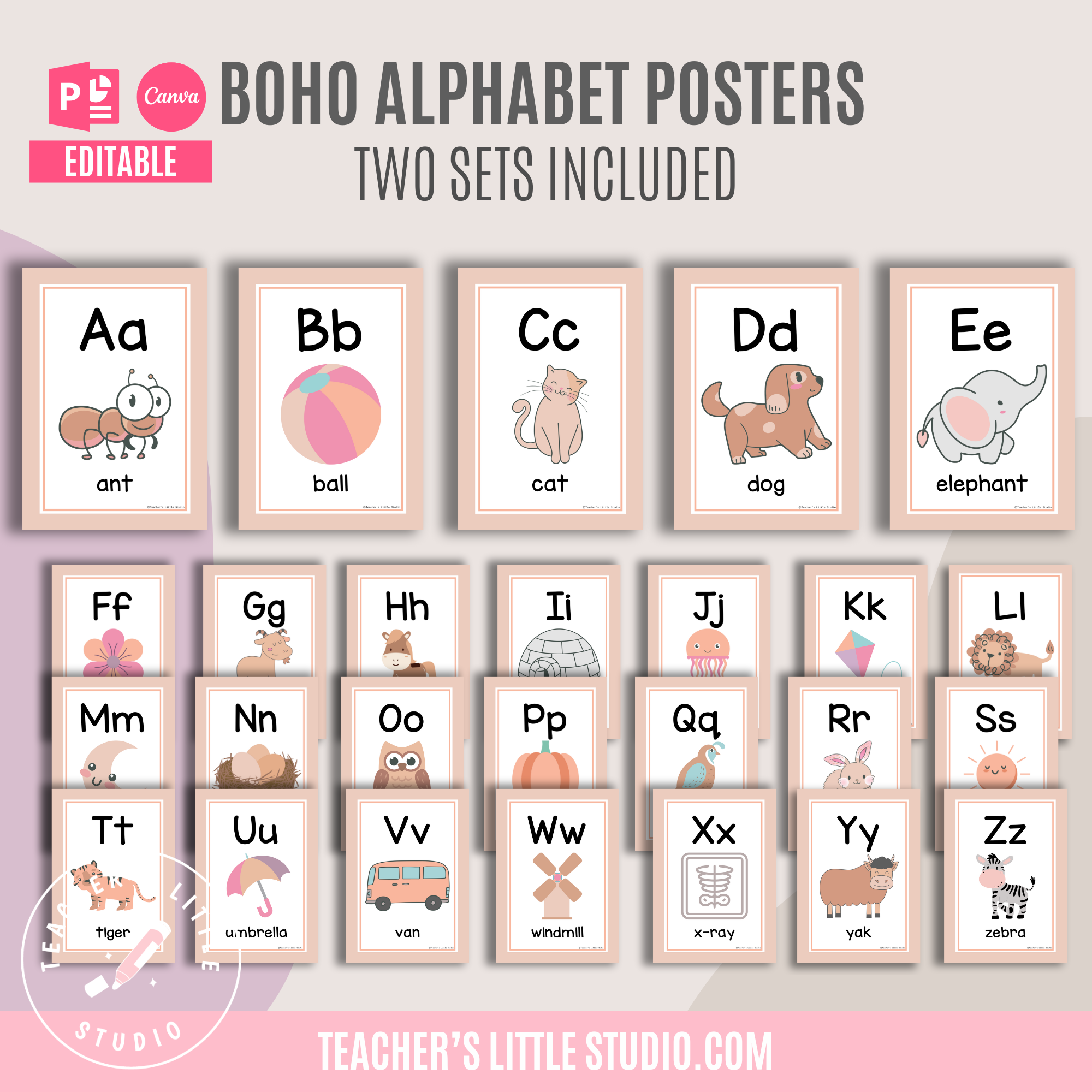 Create a calming and stylish classroom with these Editable Boho Alphabet Posters. Includes PDF, PowerPoint, and Canva templates for easy customization.