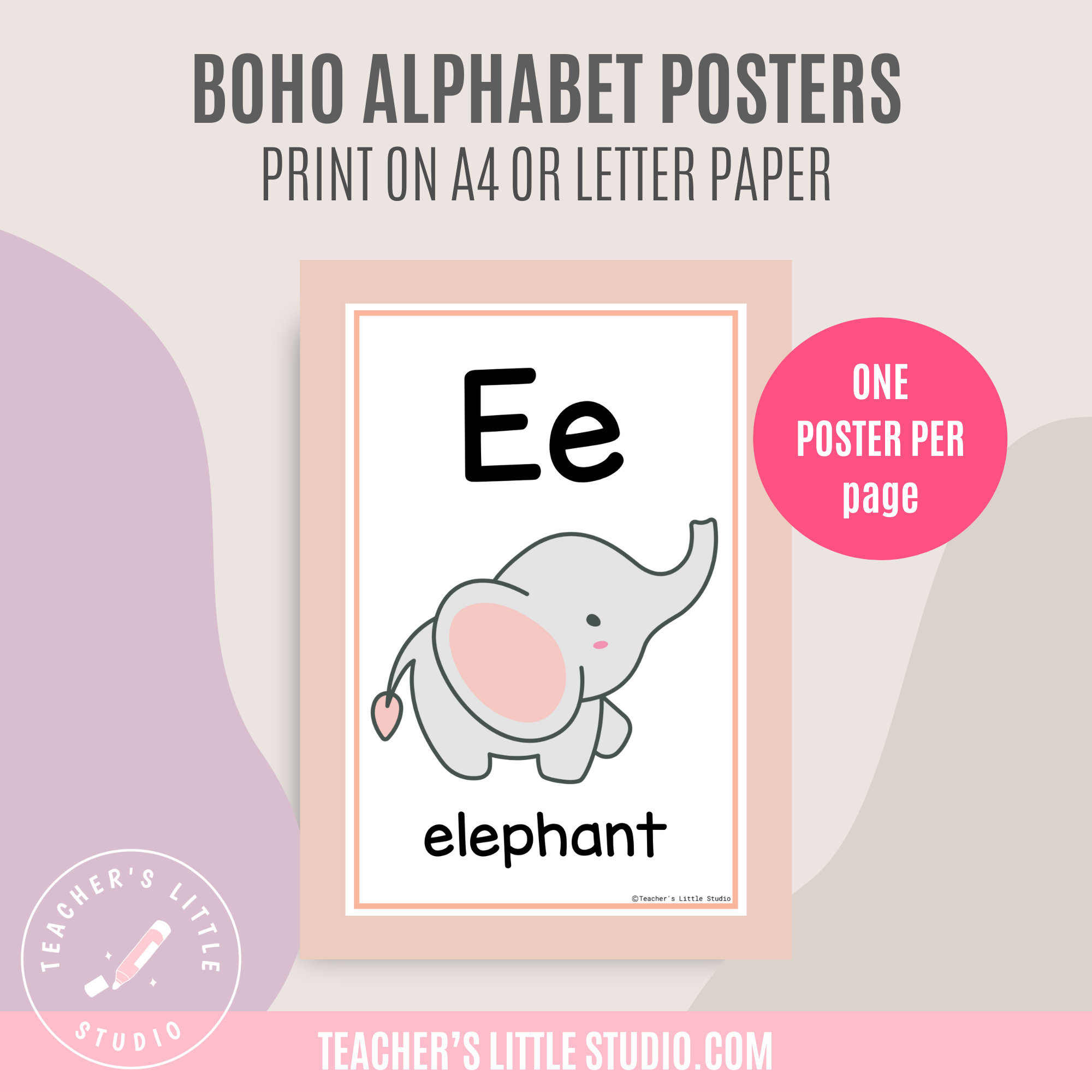 Each alphabet poster is A4 in size but can be printed on US Letter paper by adjusting your printer settings to fit the page. Whether you choose to use them with the ready-made set, or personalize them to suit your classroom needs, these posters make a beautiful and practical wall display for any learning environment.