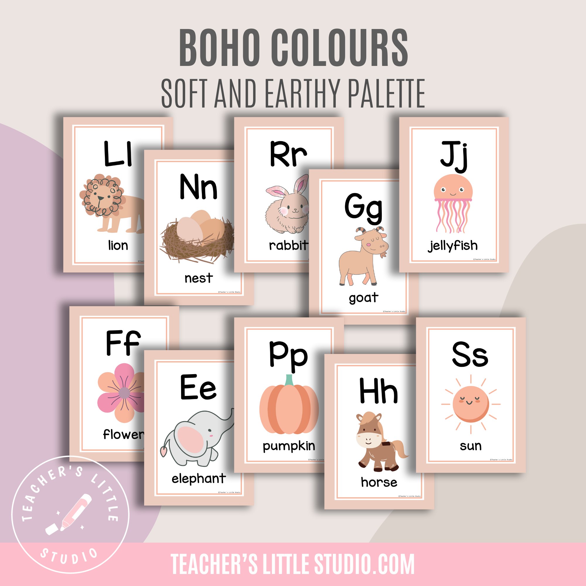 Transform your classroom into a calm and inspiring learning space with these Editable Boho Alphabet Posters. Designed with a soft, earthy palette, these posters not only support letter recognition and literacy development but also create a soothing classroom environment that enhances focus and engagement.