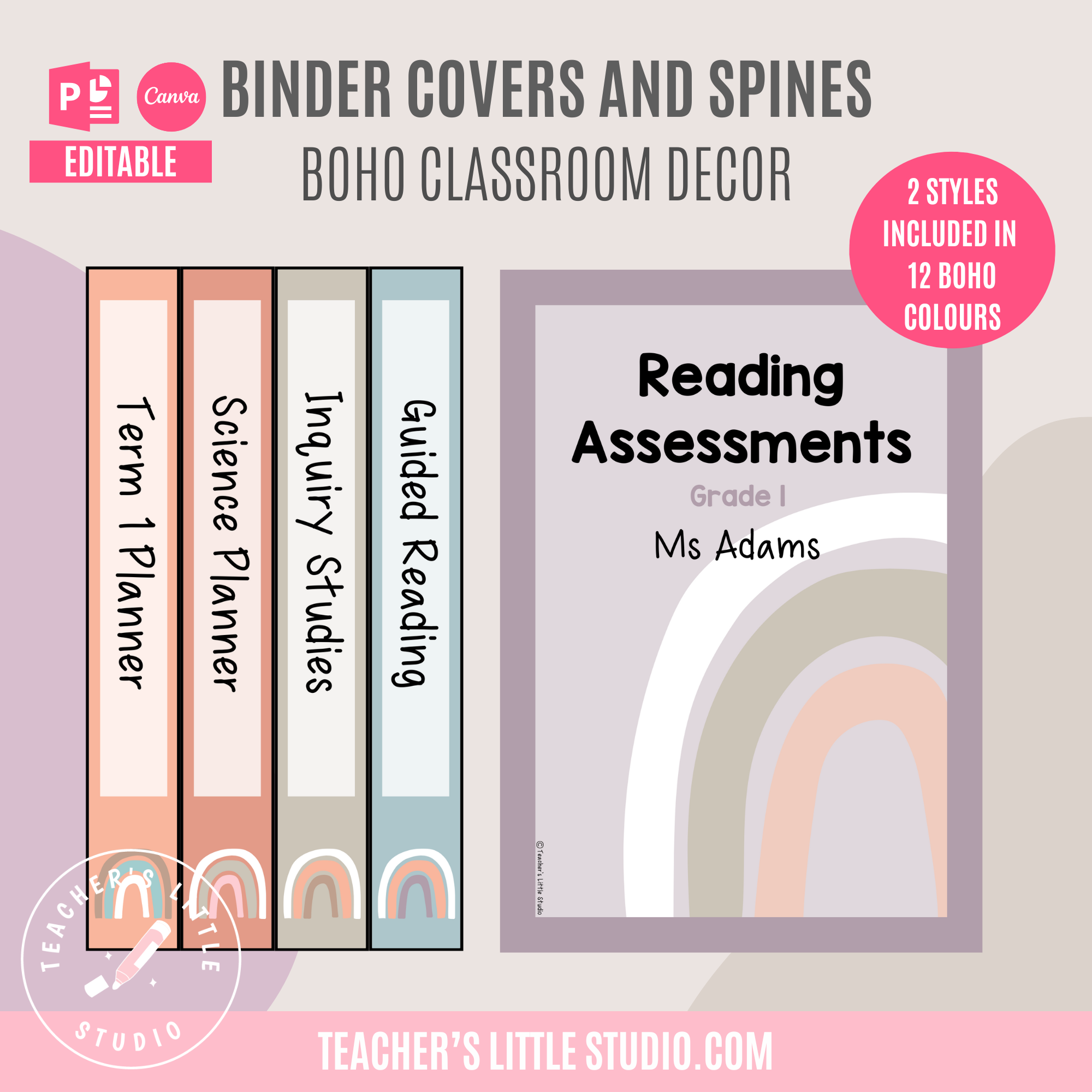 Keep your binders beautifully organized with these Boho Binder Covers and Spines in 12 calming colors. Editable in Canva and PowerPoint with PDF link provided.