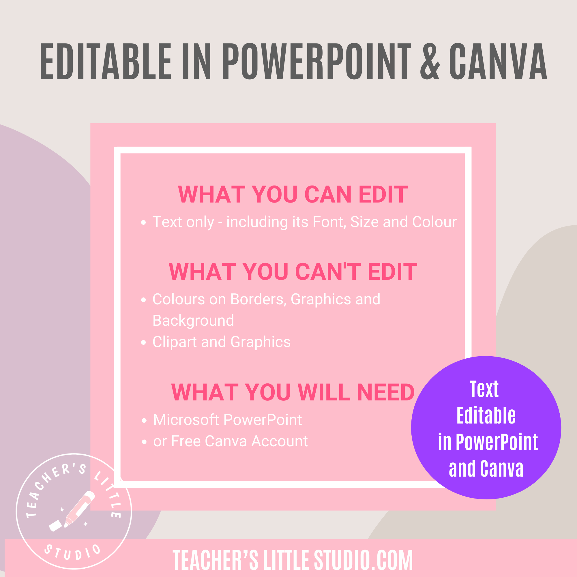- An up-to-date version of Microsoft PowerPoint to edit this resource without compatibility issues. If you don’t have PowerPoint, you can get a free one-month trial here: Microsoft 365 Trial.