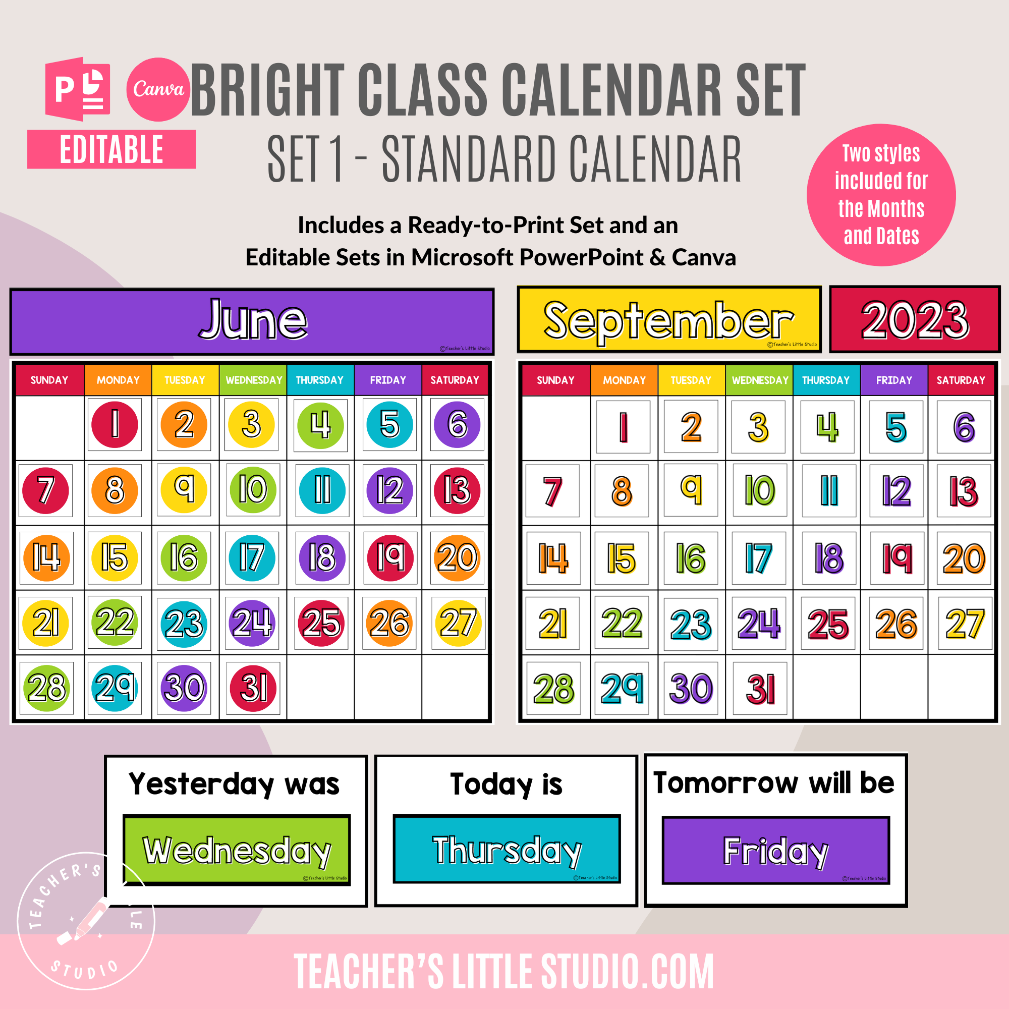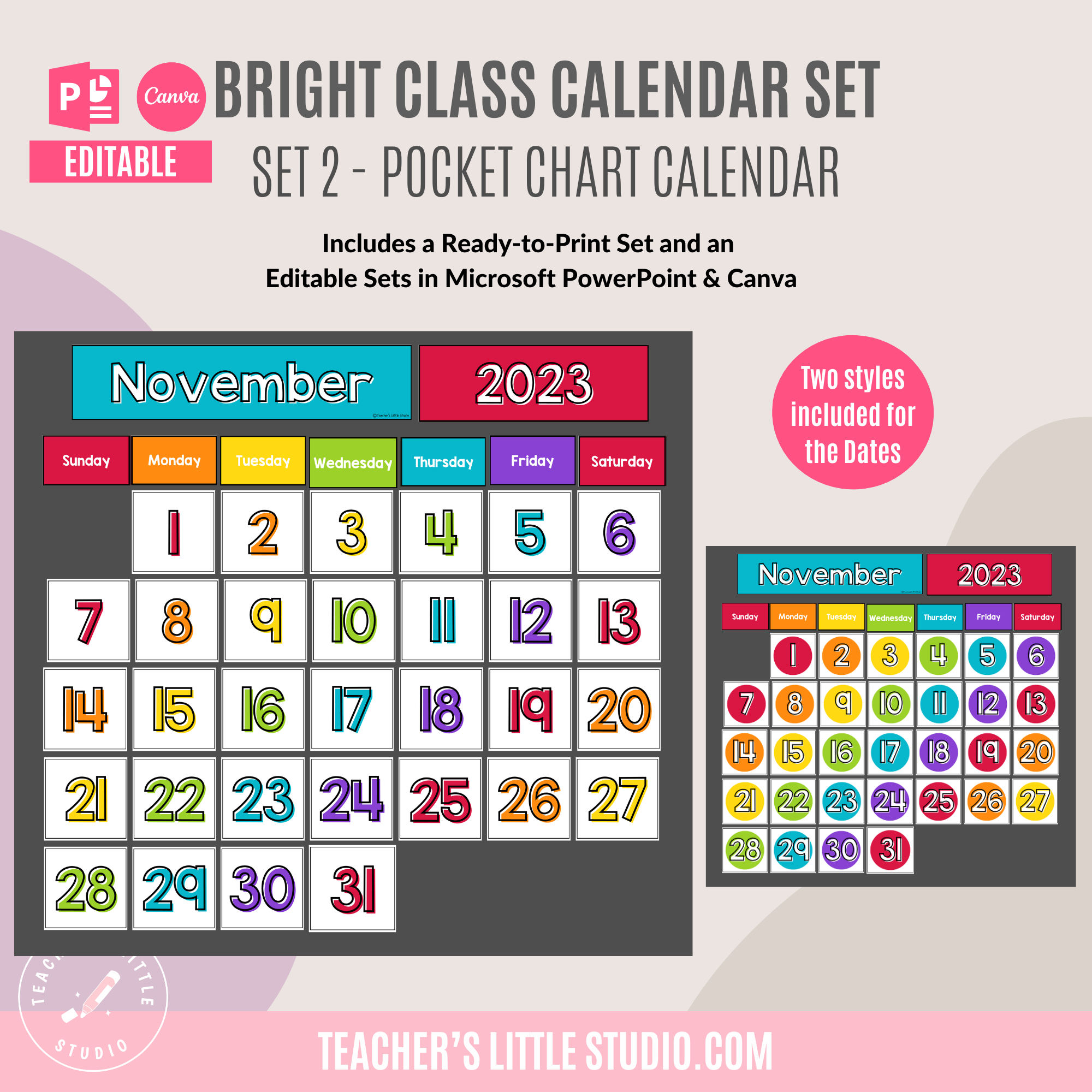 Editable Bright Class Calendar Set