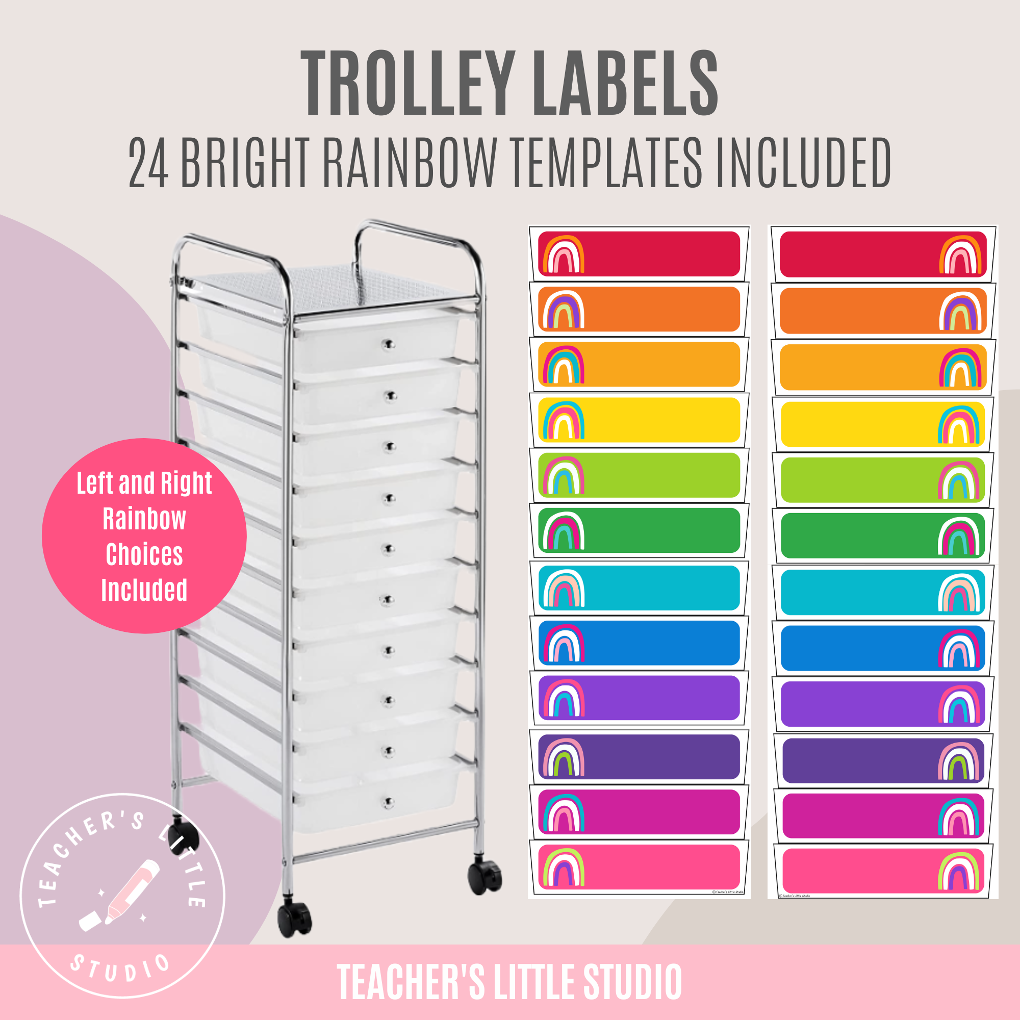 - 24 Bright Rainbow Trolley Labels – 3 labels per page, 8 pages