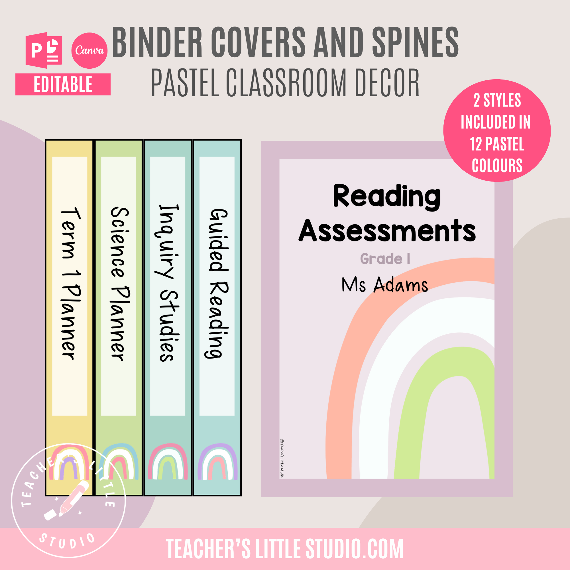 Keep your binders beautifully organized with these Pastel Binder Covers and Spines in 12 calming colors. Editable in Canva and PowerPoint with PDF link provided.