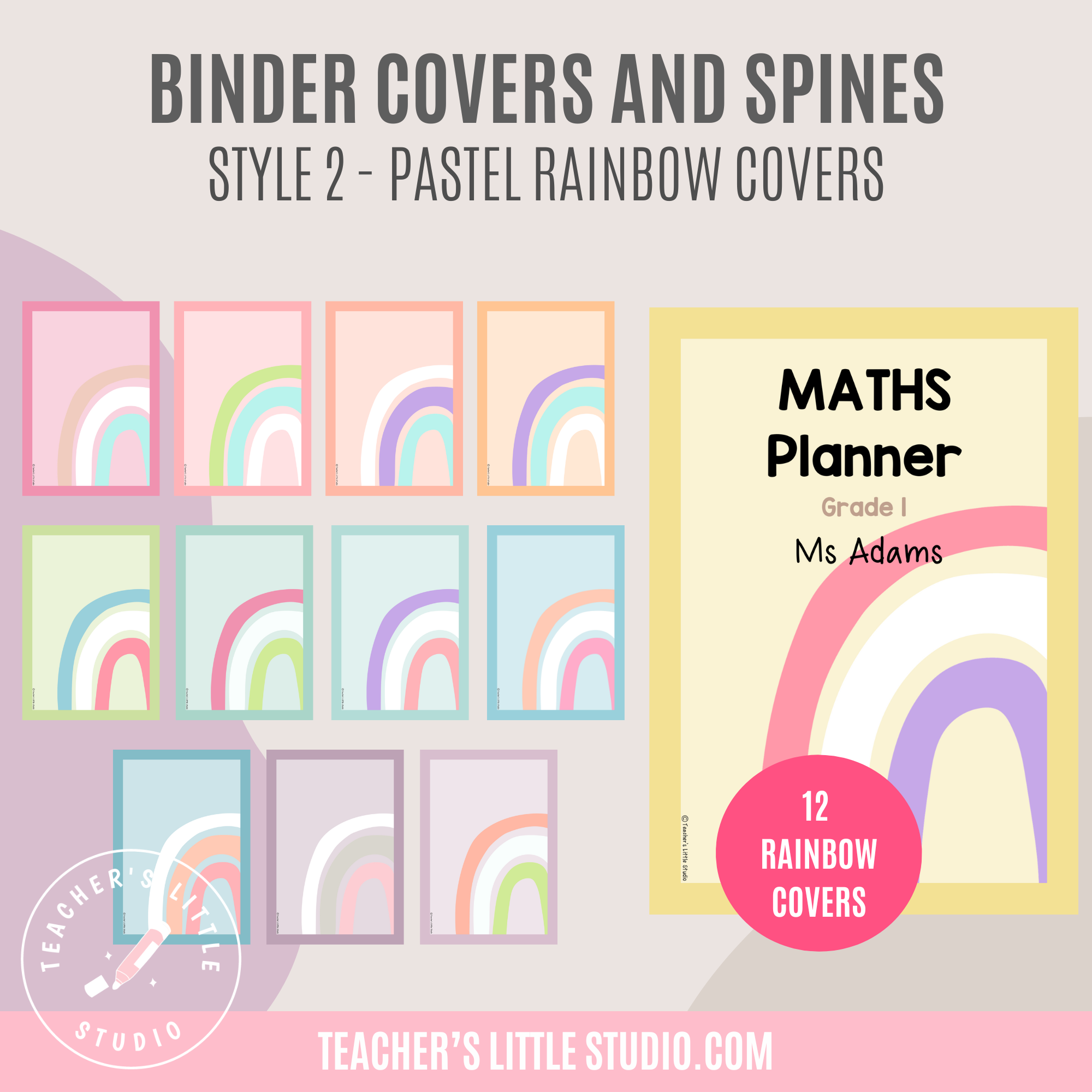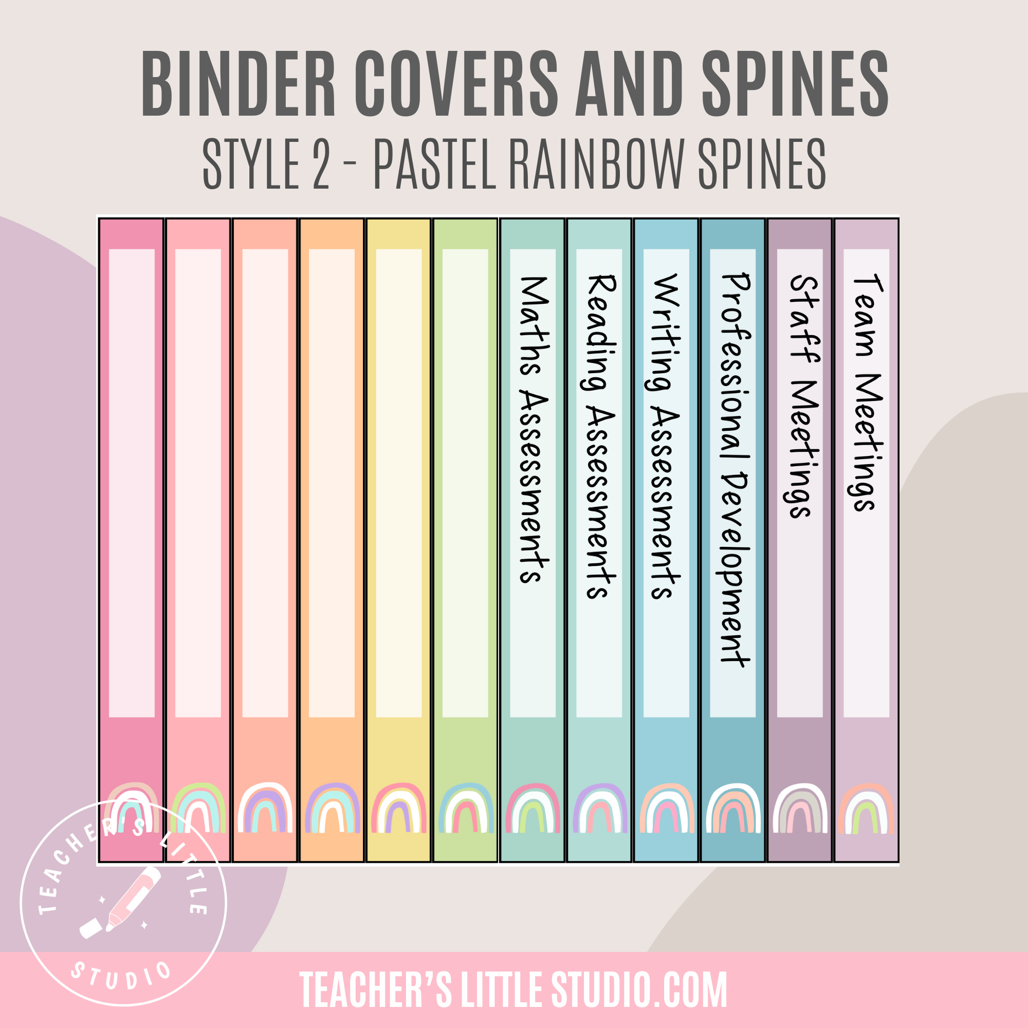 Bring calm, style, and organization to your classroom, office, or home with these Pastel Binder Covers and Spines. Designed in 12 soothing boho colors, this set includes two unique styles—Pastel Minimalist and Pastel Rainbow—to suit your personal or classroom décor.
