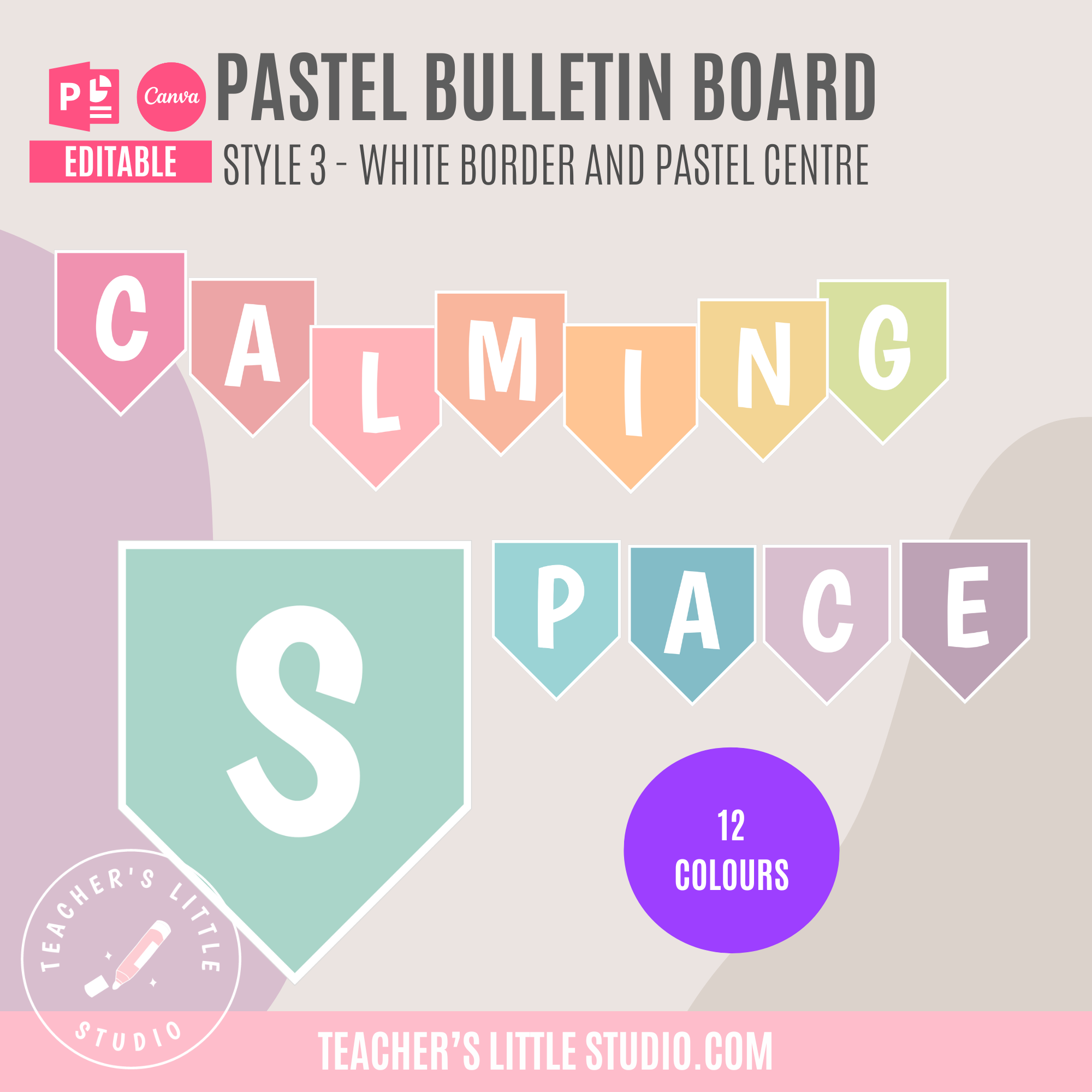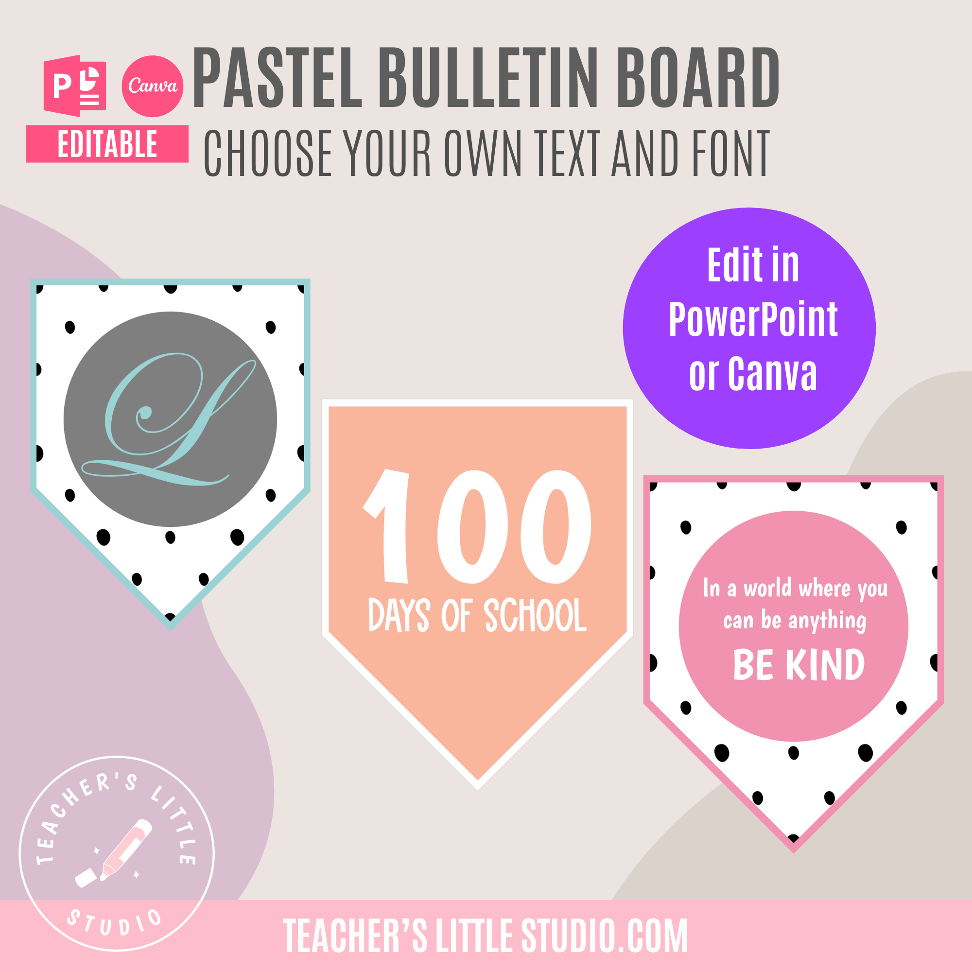 Create stunning bulletin boards with this pastel spearhead classroom banner set – the perfect addition to your classroom display, ESL resources, or homeschool environment. Designed in a spearhead shape with three unique styles and 12 calming pastel colors, these editable bunting templates allow you to customize your own text in PowerPoint or Canva.