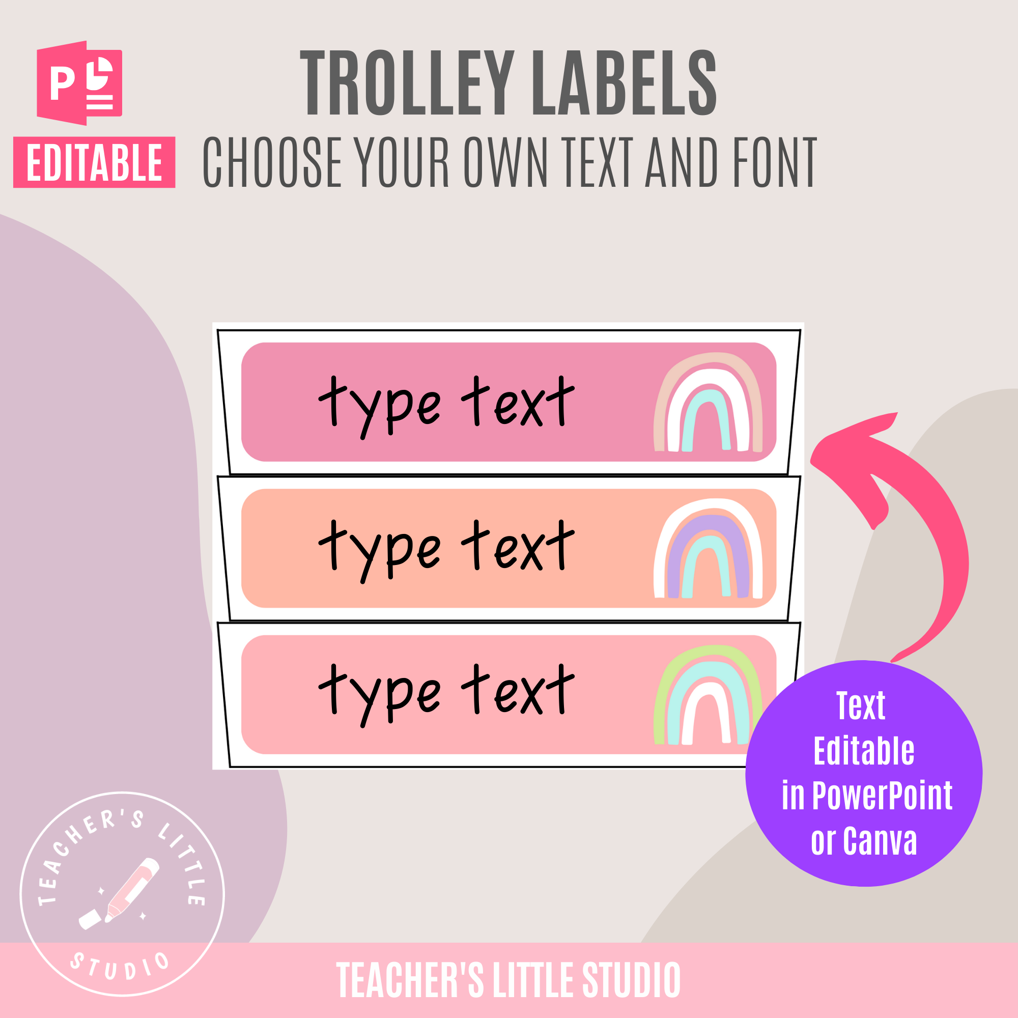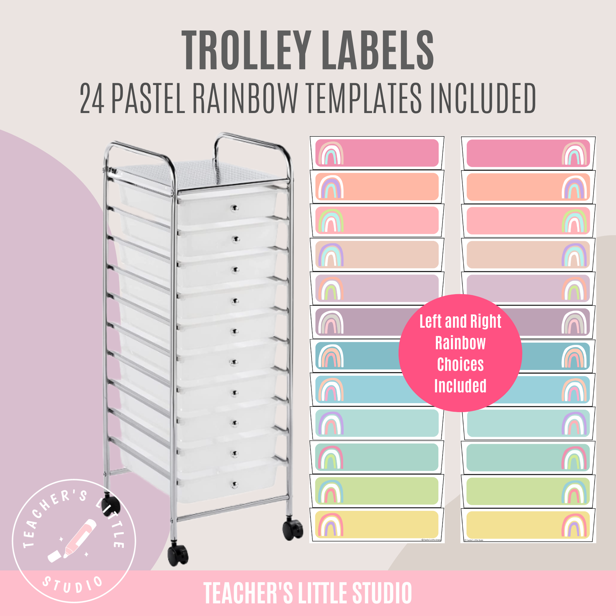 - 24 Pastel Rainbow Trolley Labels – 3 labels per page, 8 pages