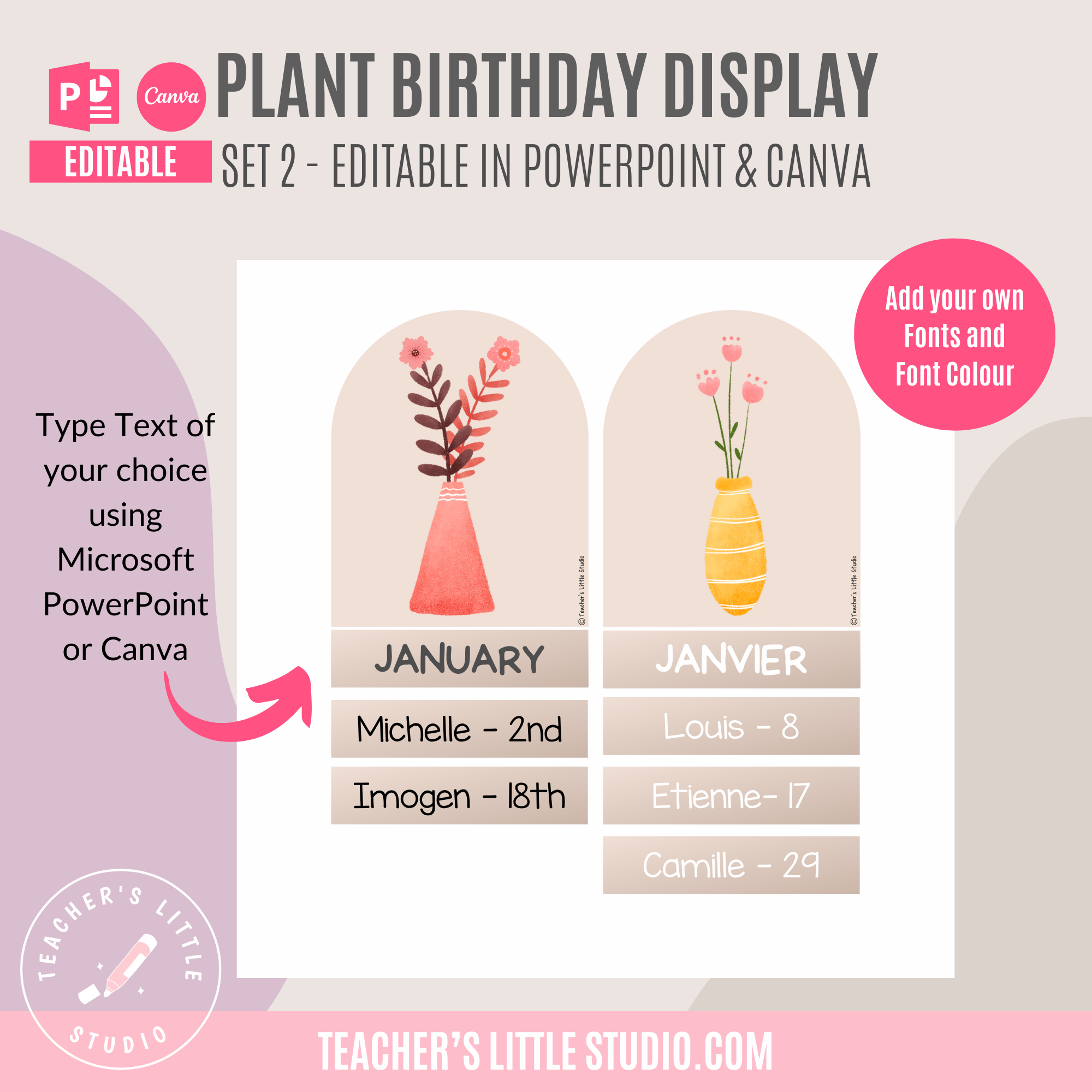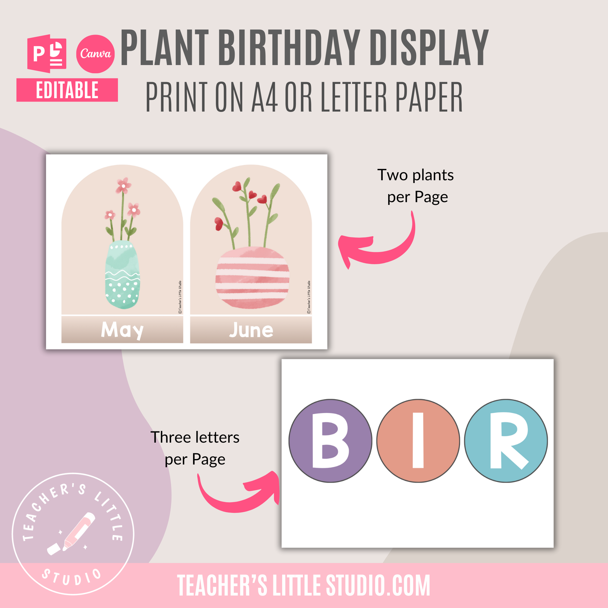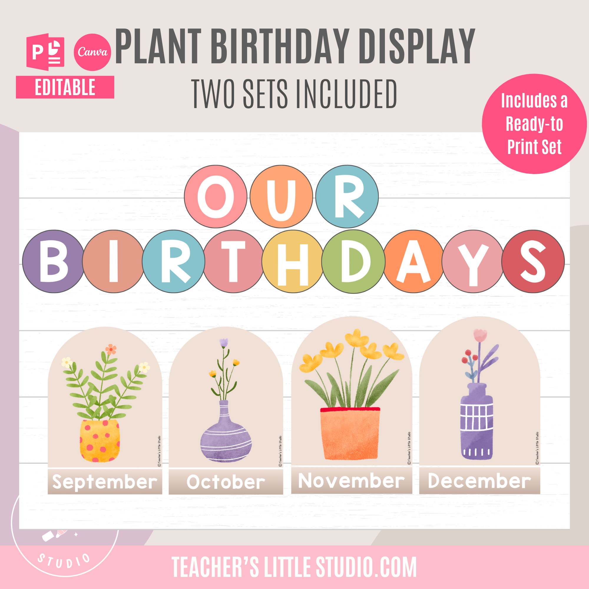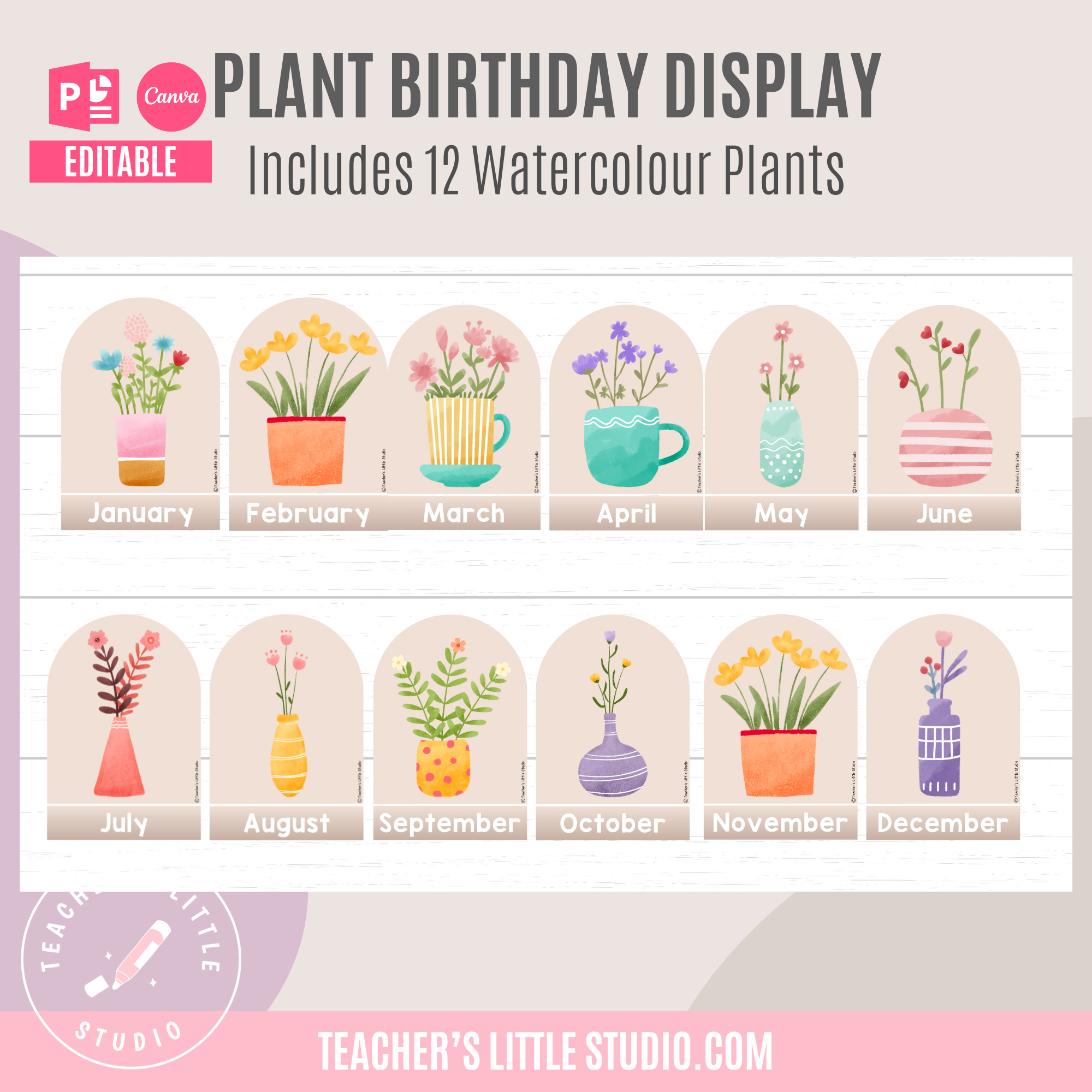 Celebrate student birthdays with this Editable Watercolor Plant Birthday Display. Includes ready-to-print PDF, editable PowerPoint, and Canva templates.