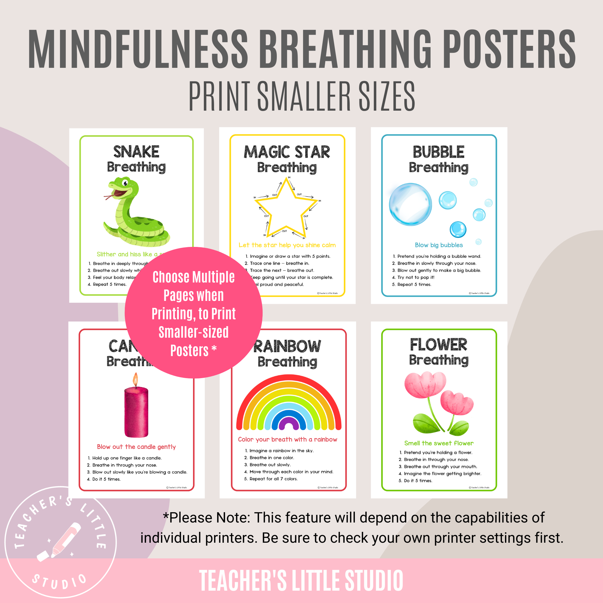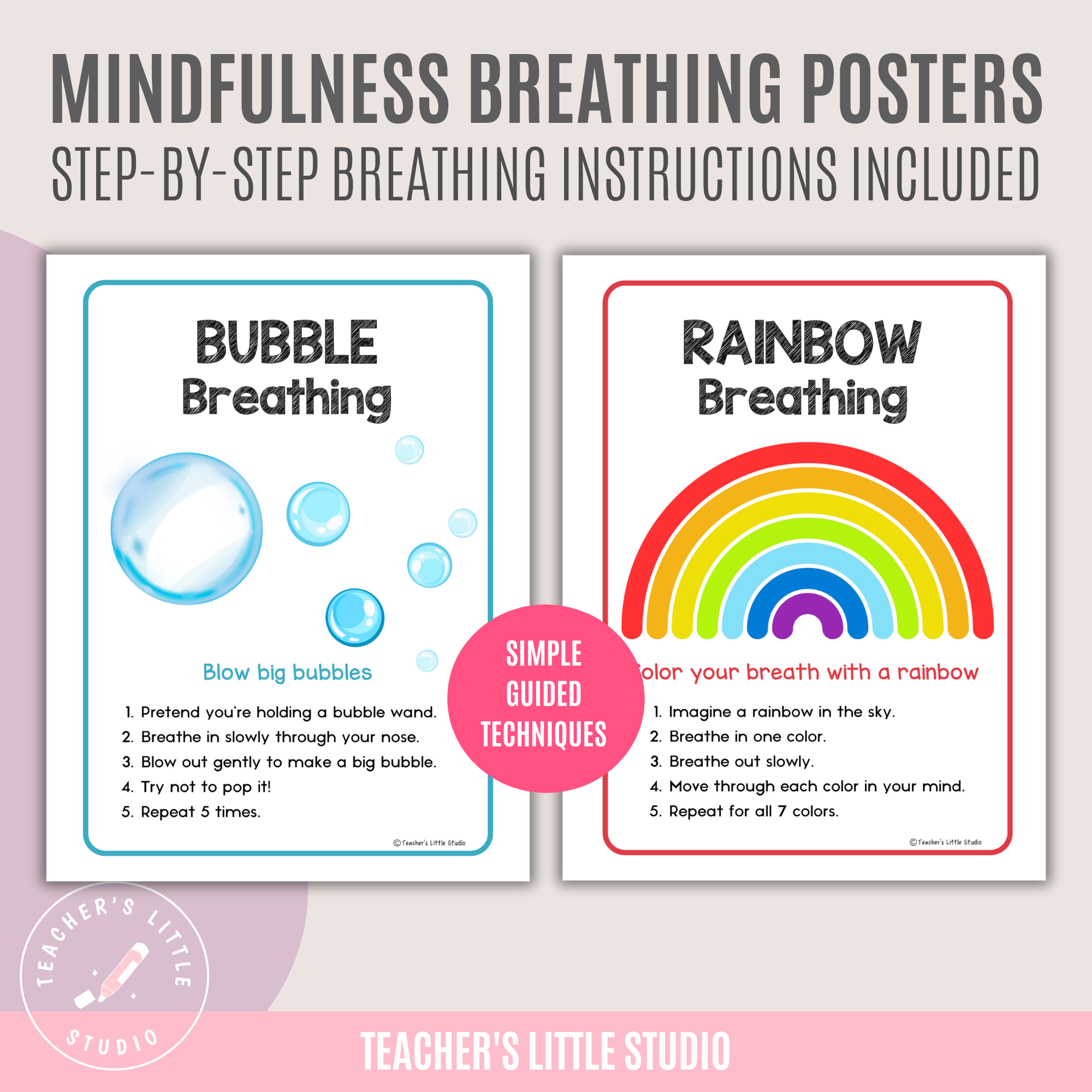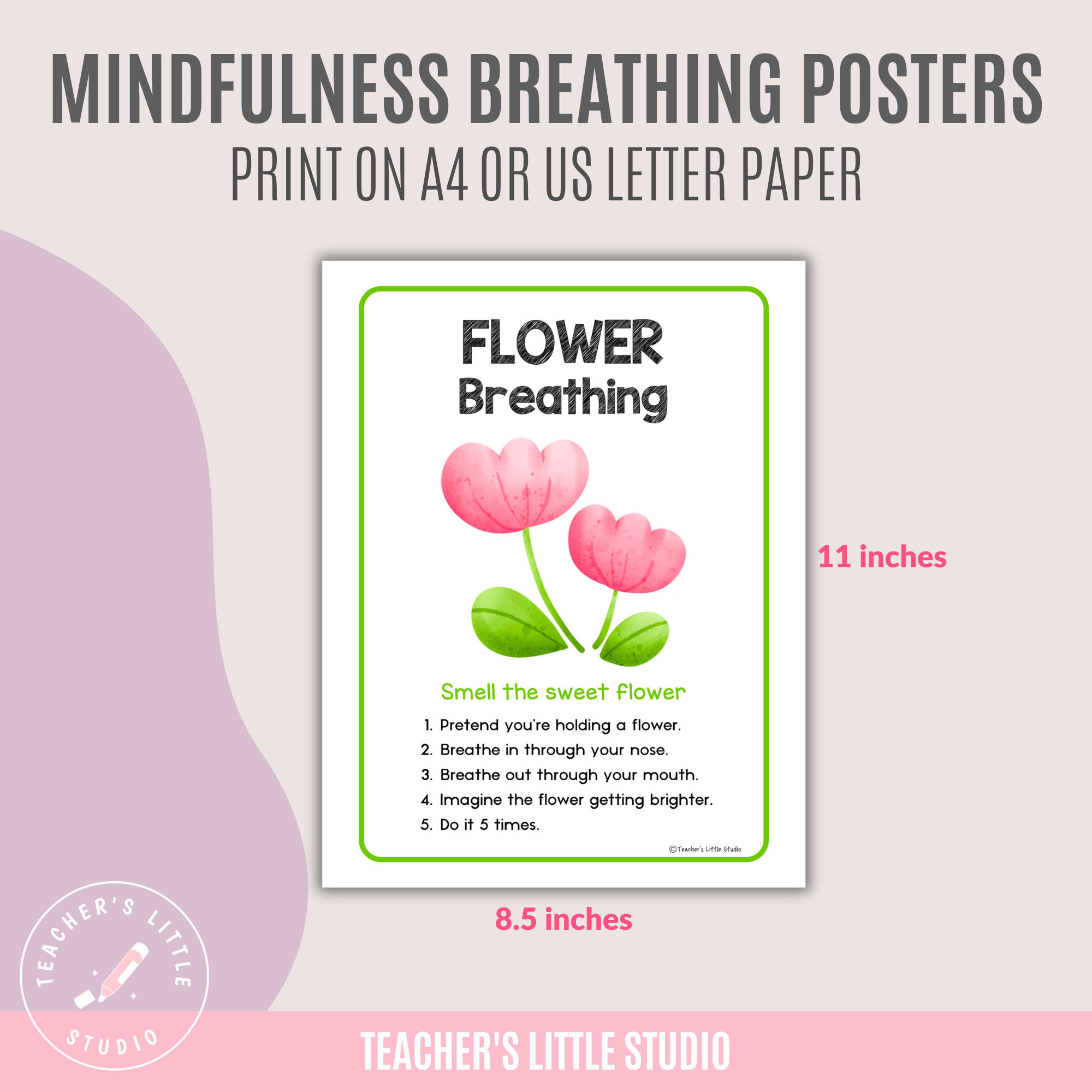 Help kids aged 4–8 practice calm, focus, and self-regulation with these fun mindful breathing posters featuring step-by-step techniques.