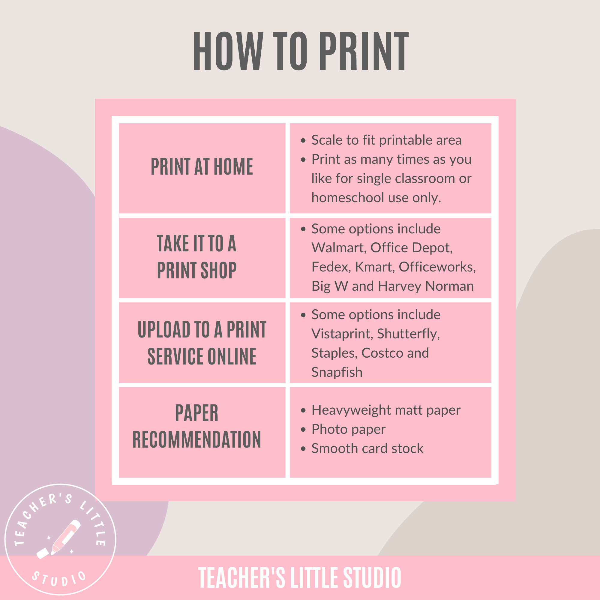 - PRINT – Print at home, school, or through your favorite online print shop.