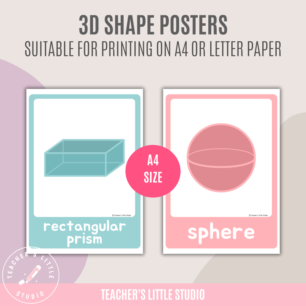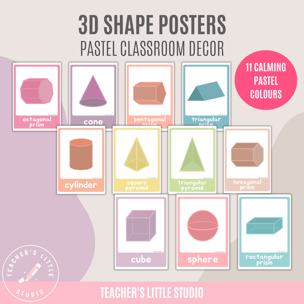 Bring calm and stylish visuals into your math lessons with these Pastel 3D Shape Posters. Designed for primary, elementary, and middle school classrooms, these printable posters are also a fantastic resource for homeschooling.