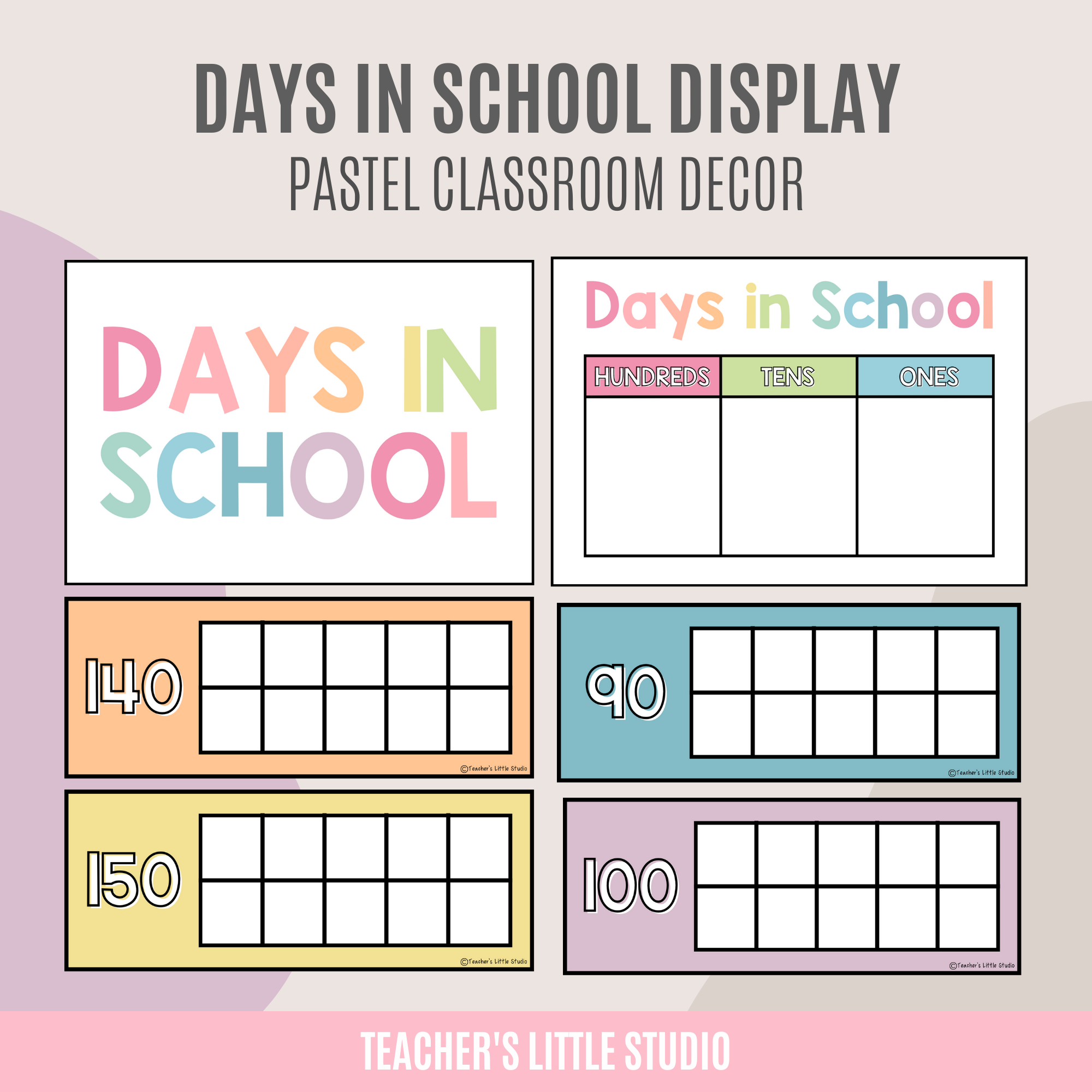 Keep track of the number of days in school with this Days in School Display Set using Ten Frames. Perfect for elementary, ESL, and homeschool classrooms, this calm pastel set makes daily counting engaging and visually appealing.