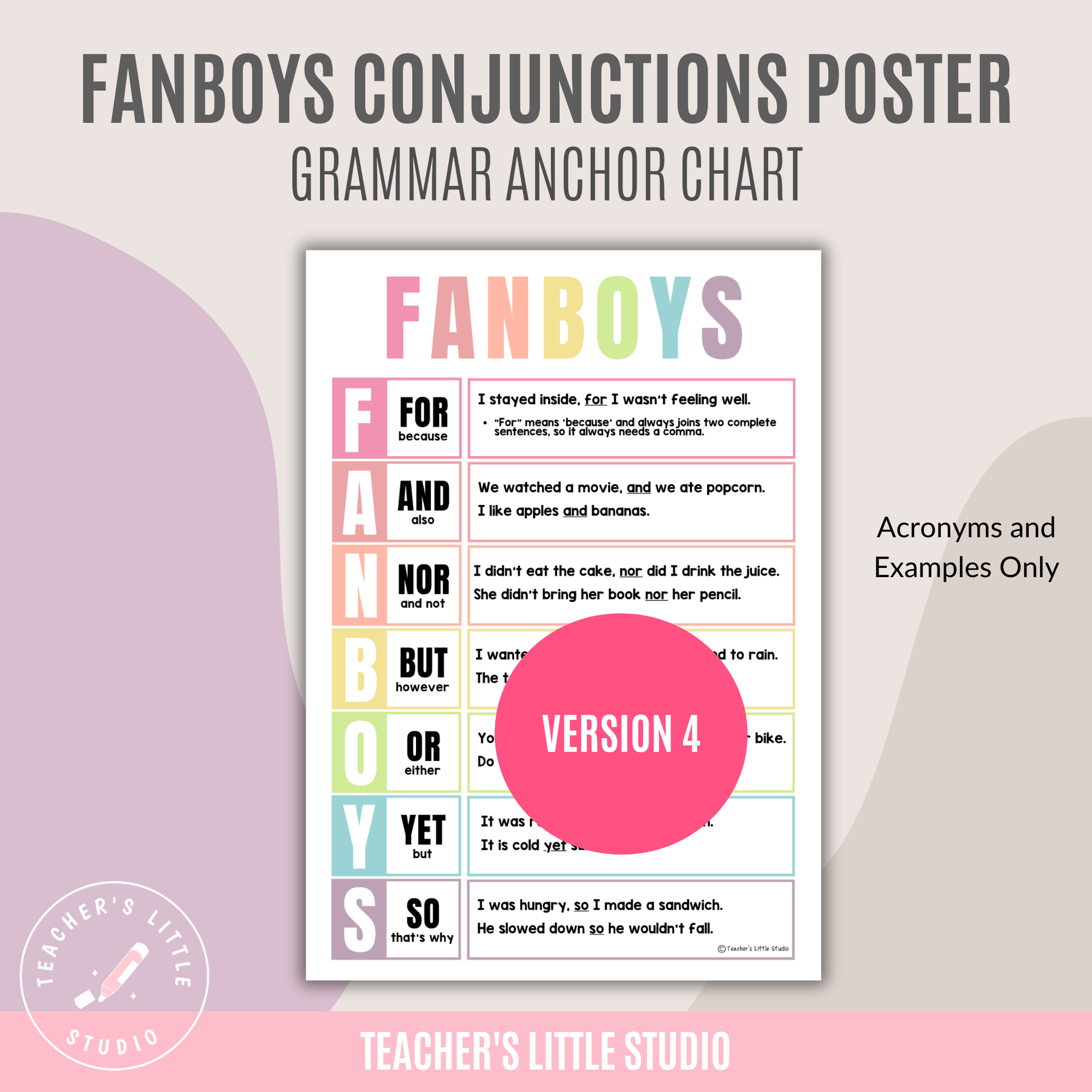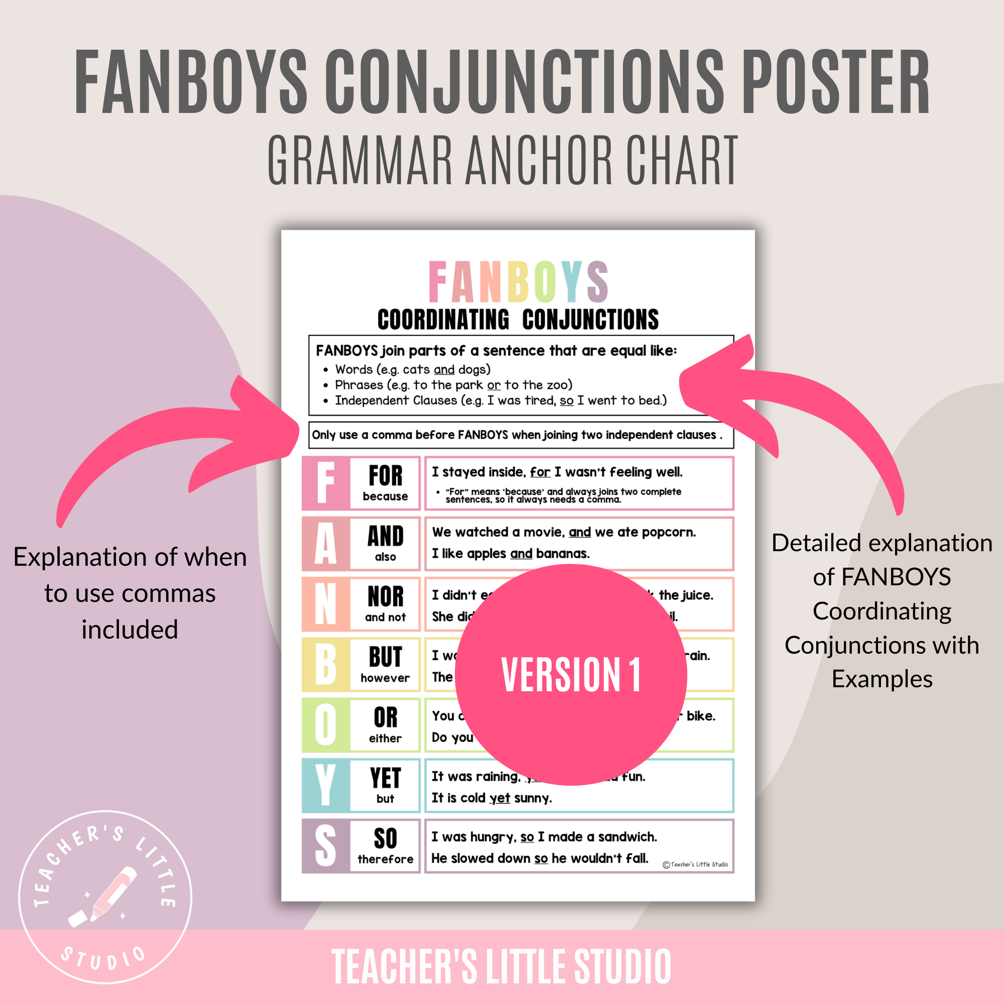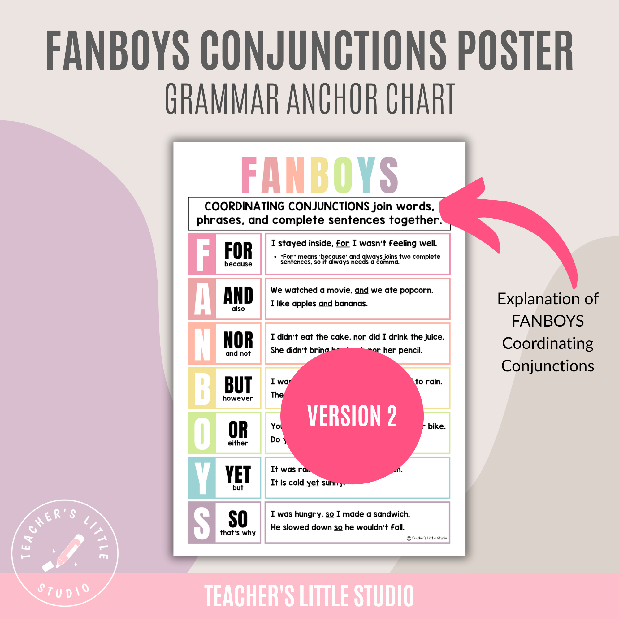 Make grammar lessons clear and engaging with this FANBOYS Conjunction Poster Set, designed to help students understand coordinating conjunctions and how they work in sentences. These posters make it easier for learners to see when to use commas, how to join ideas, and how to apply FANBOYS words in their own writing.