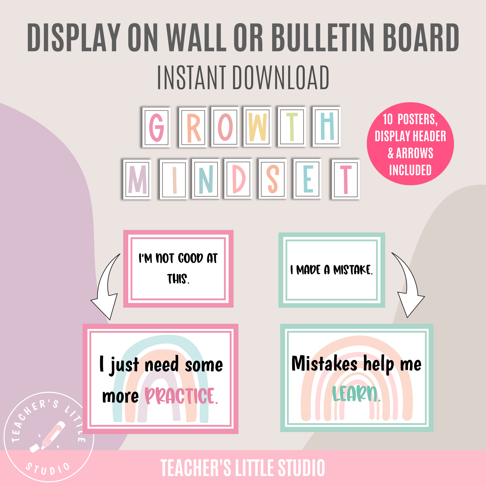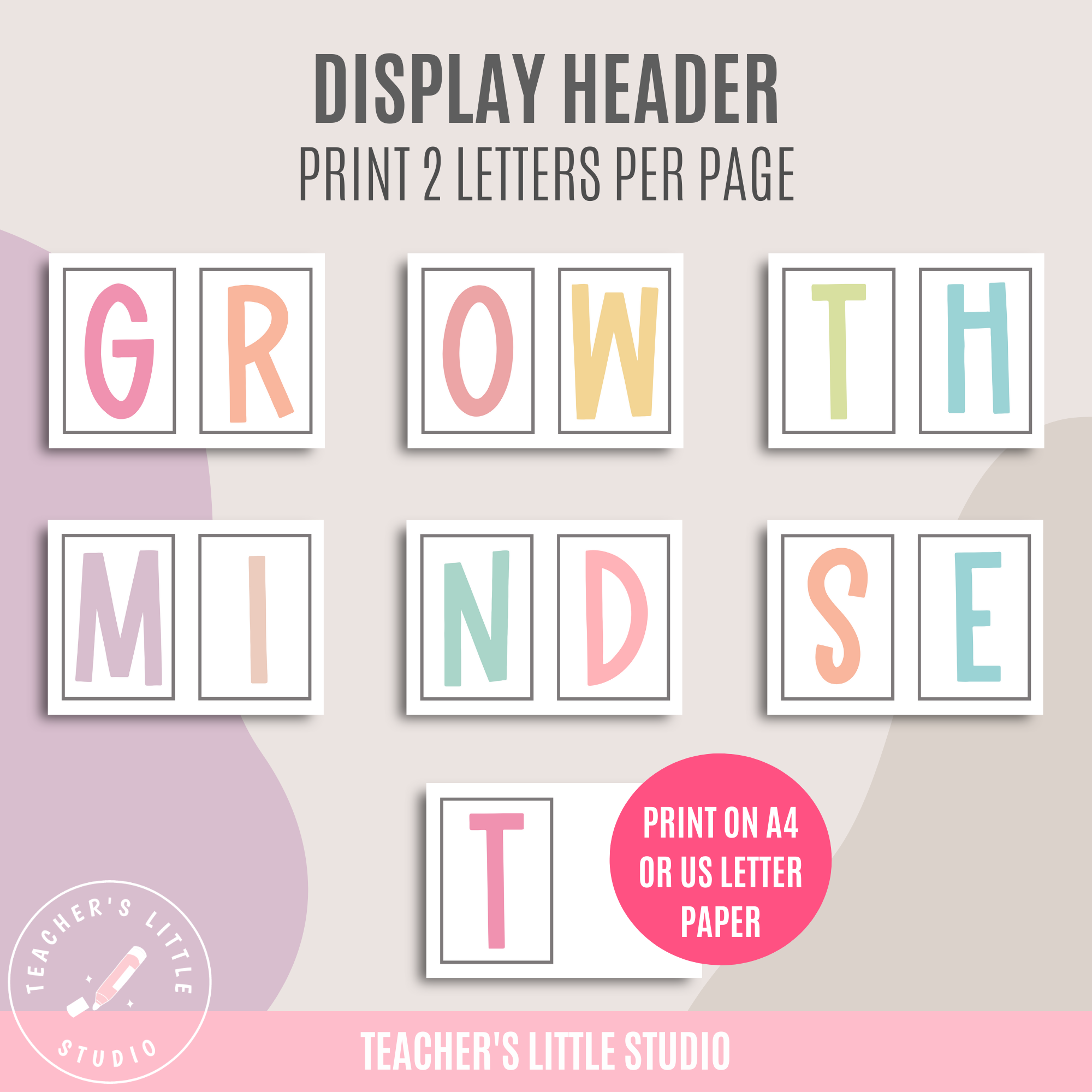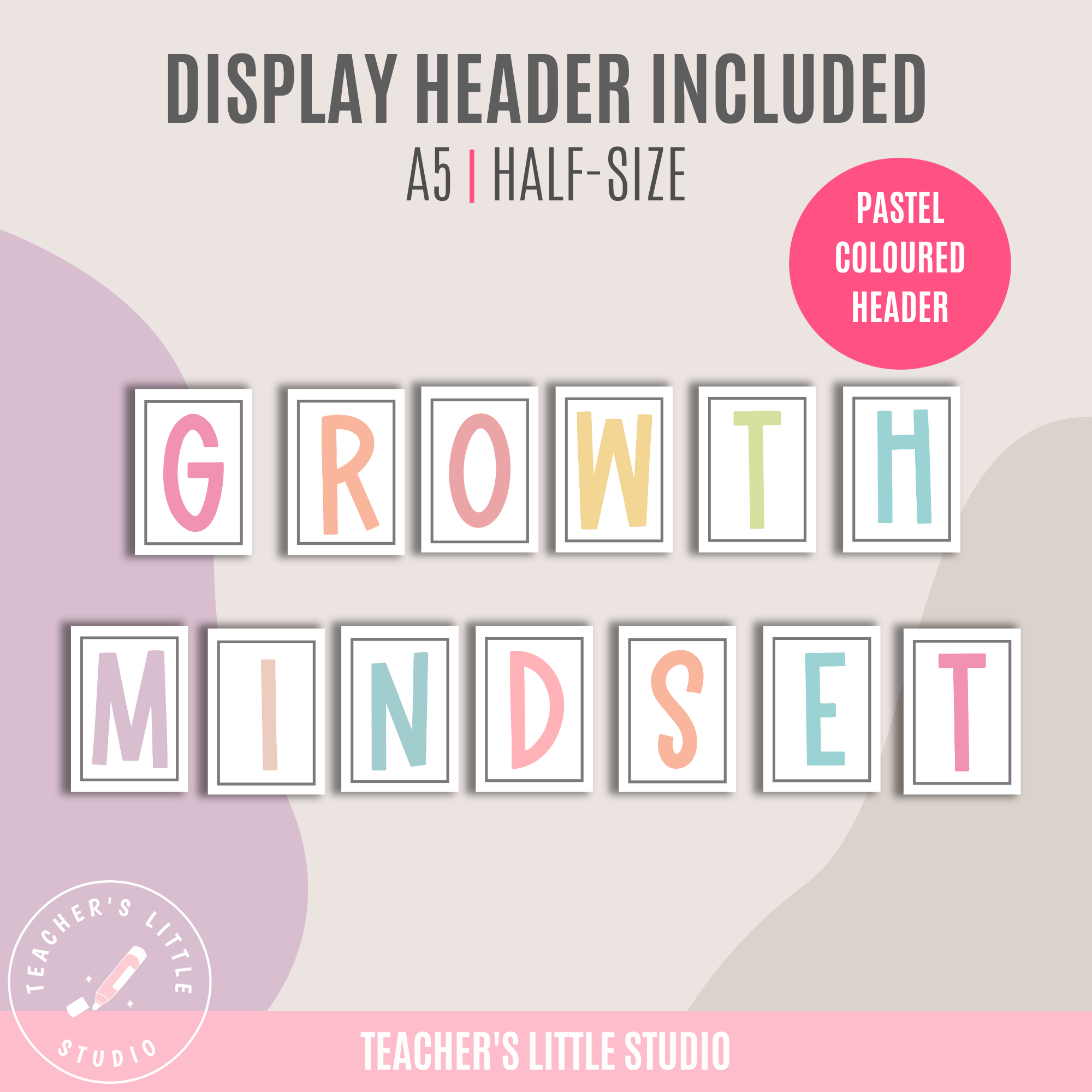 The set comes in A4 and US Letter sizes. A matching “GROWTH MINDSET” display header is also provided, perfect for creating a positive wall display.