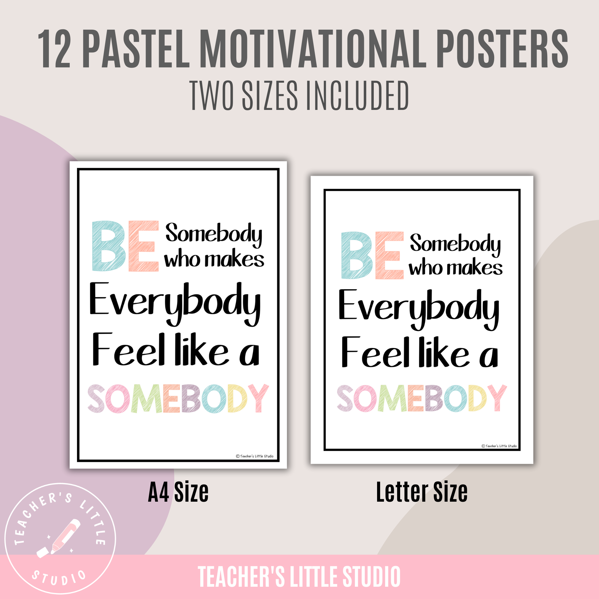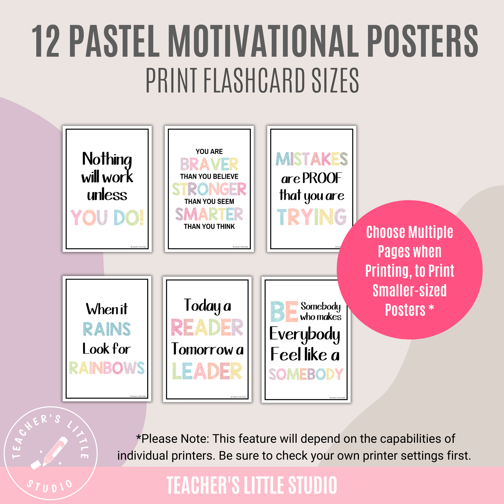 These ready-to-print inspirational quotes come in a pastel palette, ideal for calm classroom settings. Two sizes are included – A4 and Letter size. It is recommended that you laminate these positive motivational posters for long-term use.